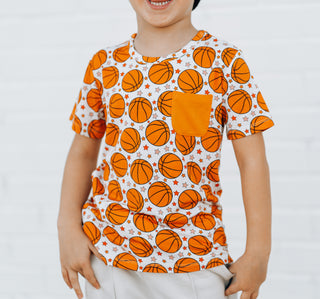 Score with style in this Game Time Dream Pocket Tee! This fun, comfort-driven pocket tee is made with bamboo material and features an awesome basketball print, perfect for any court king or queen. Shoot, dribble, and look oh-so-cool in this groovy short sleeve tee! Let's play ball!
