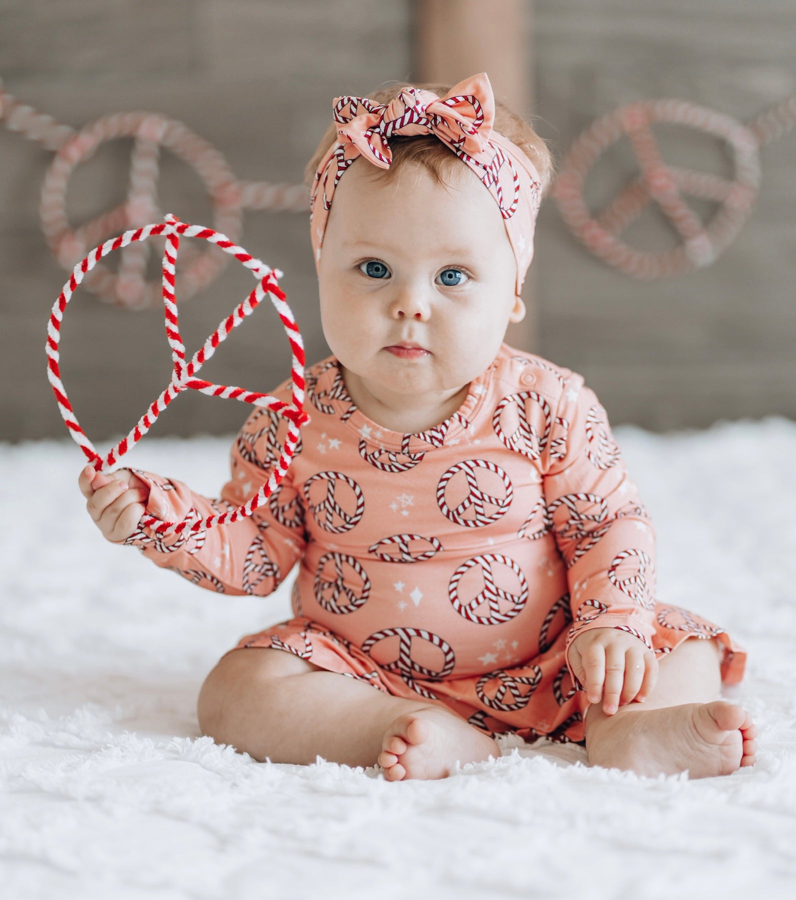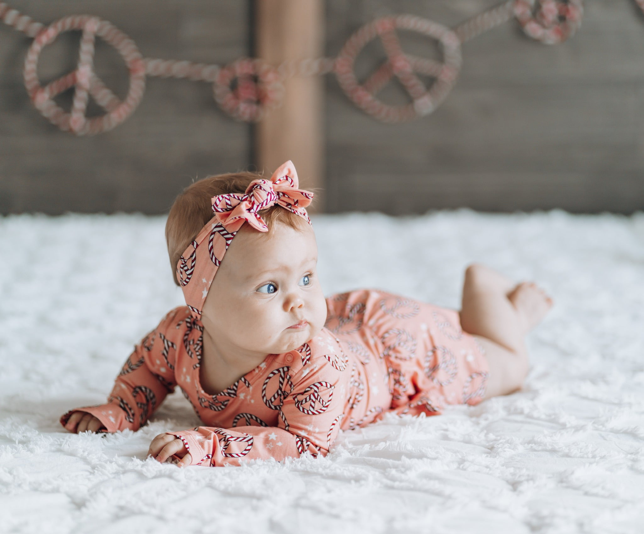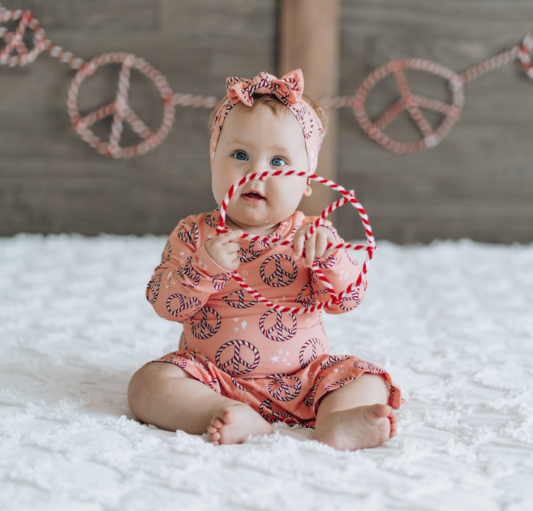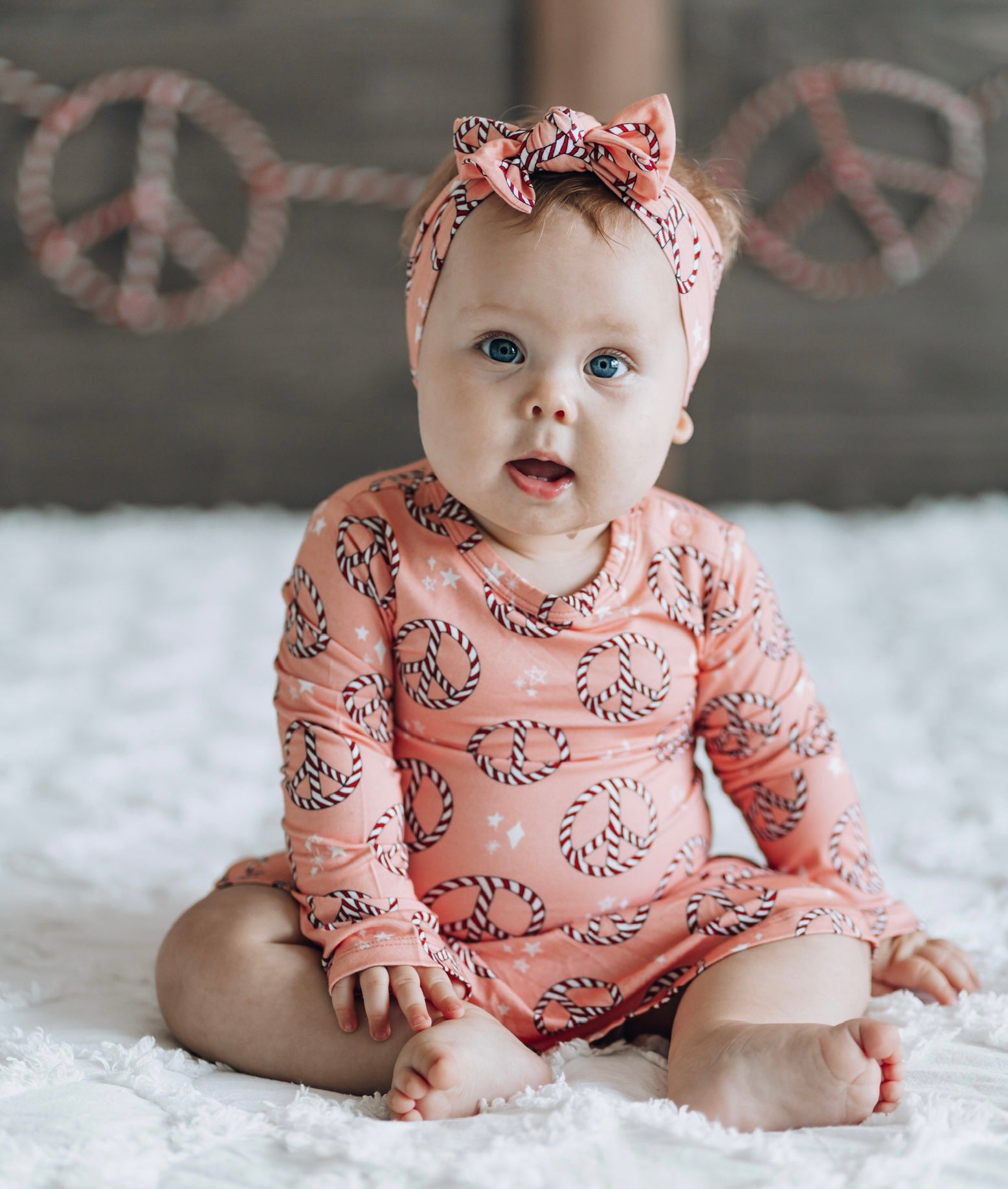 "Groovy Canes" Made from the softest and most breathable bamboo viscose material, your babe won't want to take this off! Designed for all the love and extra snuggles! Sleep and play with zero irritation with our tag-less garment tags! Easy diaper changes, you got it-made with 3 easy to remove snaps. We promise you'll love it!