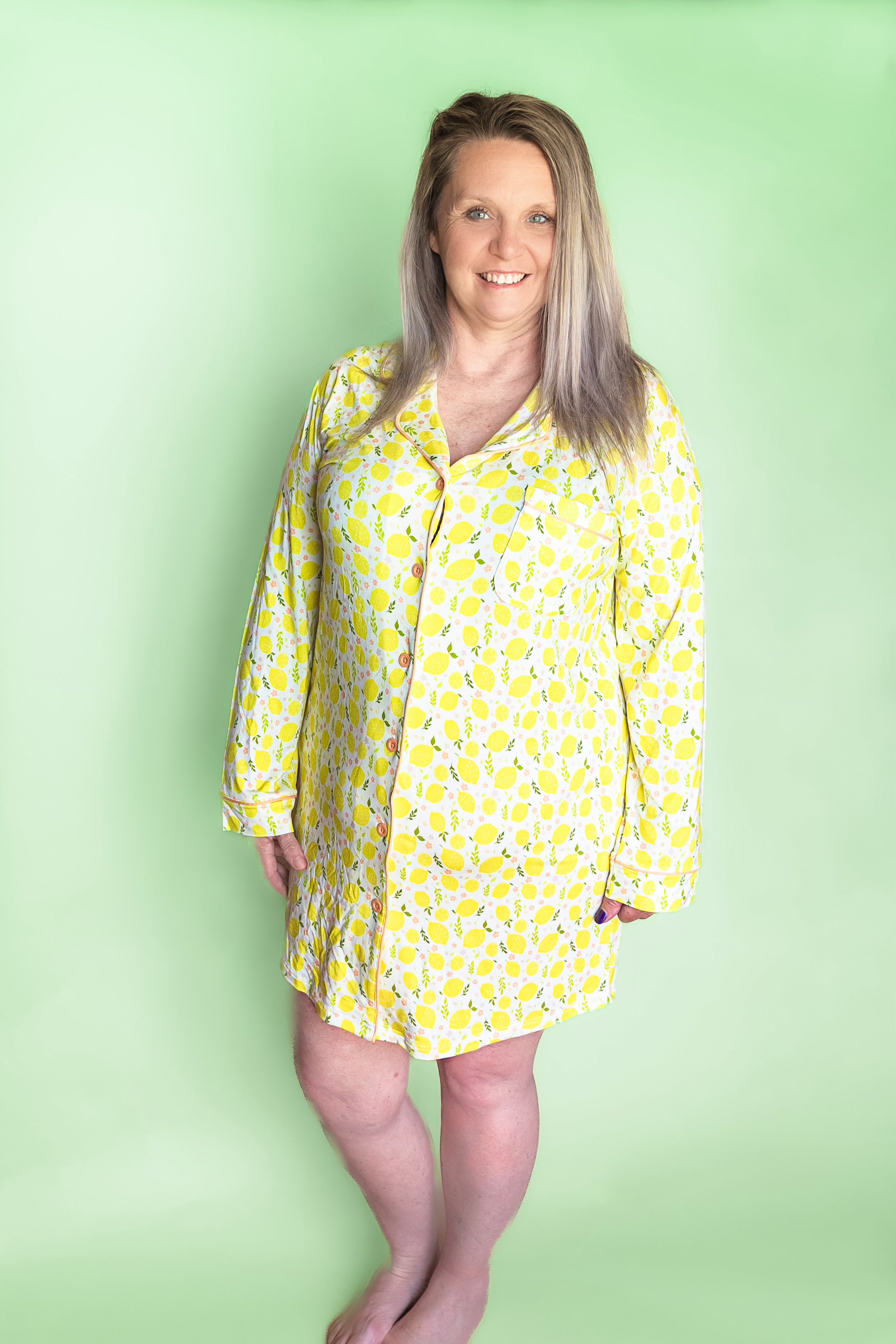 Our Lemon Blossoms Women's Dream Gown is perfect for a comfortable night's sleep! Made from bamboo material, this gown features a beautiful lemon blossoms print that will make you feel like you're in a dream. Sleep in style and comfort with our stunning gown.
