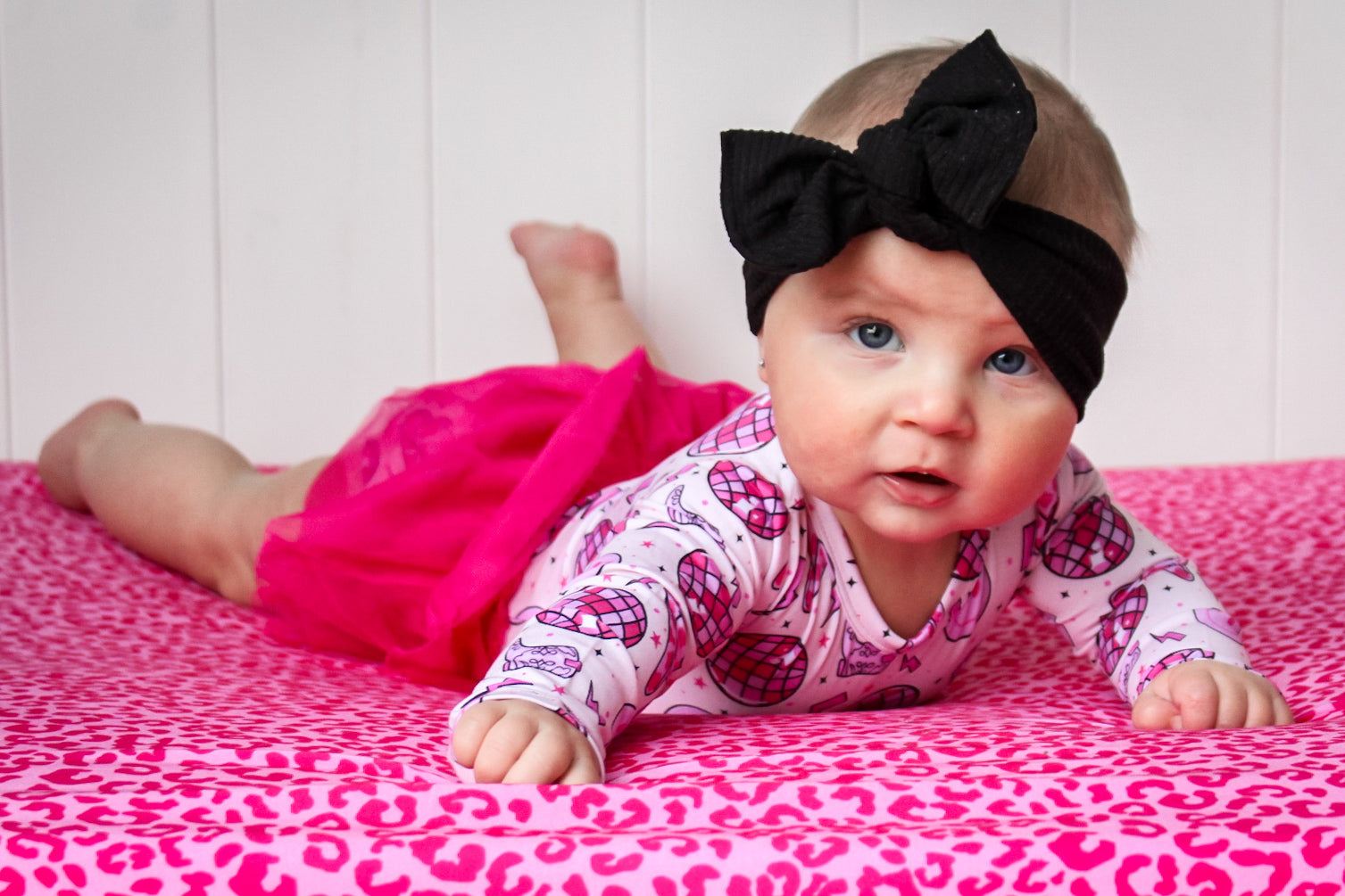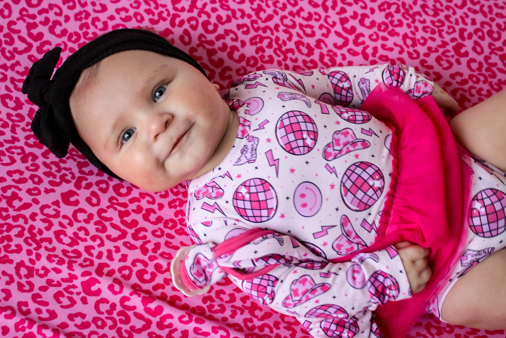 "Let's Go GirlZzz" on trend print! NEW STYLE ALERT! Made from the softest and most breathable bamboo viscose material, your babe won't want to take this off! Designed for all the love and extra snuggles! Easy diaper changes, you got it-made with 3 easy to remove snaps and added tutu detail for all your party fun!