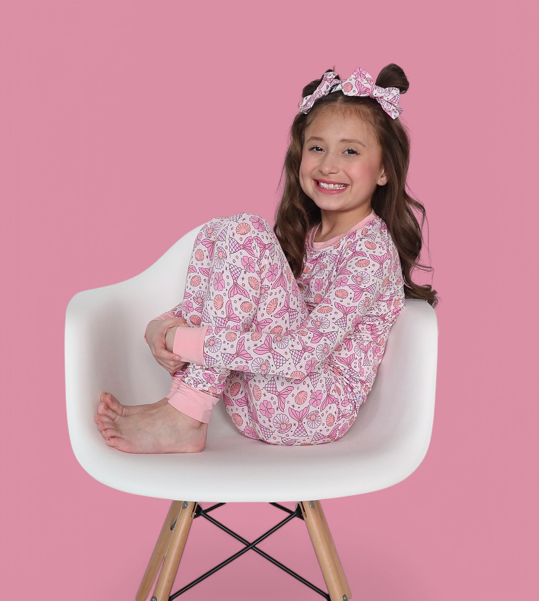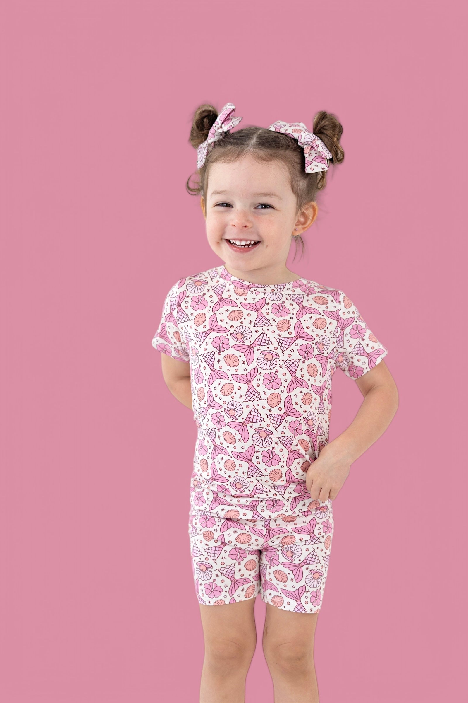 Each bow features our enchanting mermaid print, full of dreamy pink tones, sparkly stars, and seashell sweetness. Lightweight and comfortable, these clip-in bows are easy to wear and even easier to love!
