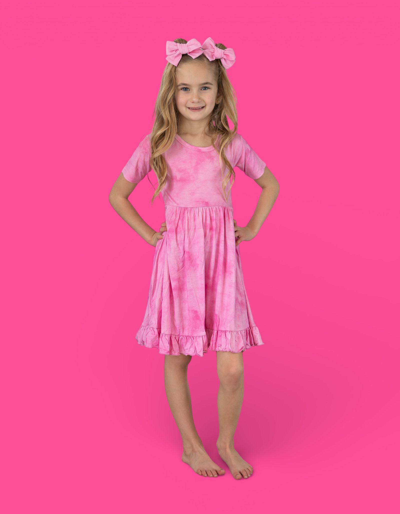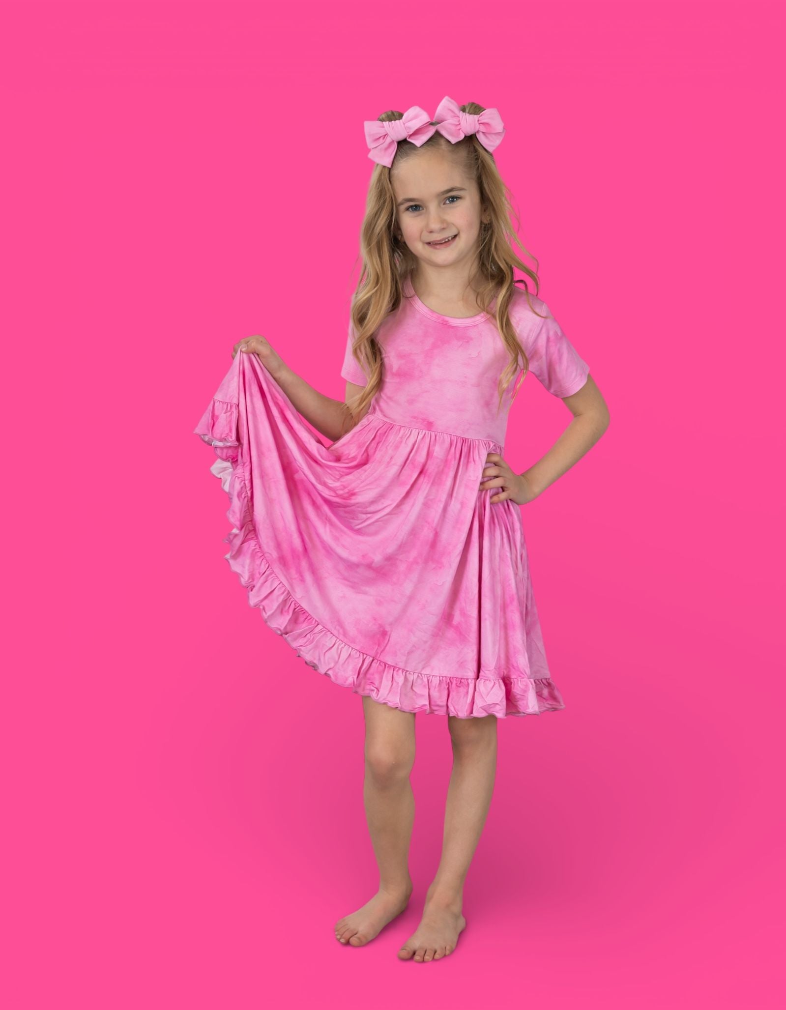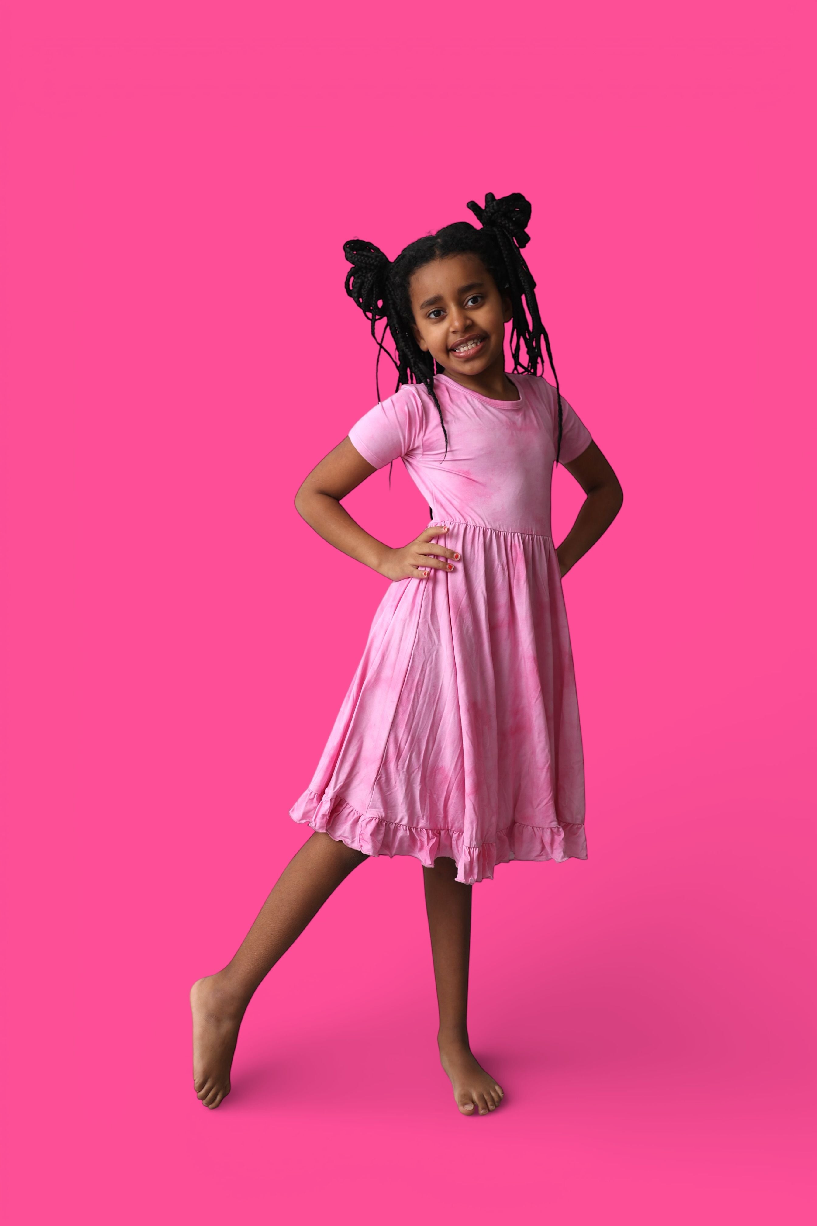 The Pink Daydream Dream Ruffle Dress is made for twirls, smiles, and everyday magic. Designed in a soft pink watercolor-inspired hue with gentle ruffle details, this dress is crafted from our signature buttery-soft bamboo fabric for a breathable, comfy feel your little one will love all day long.