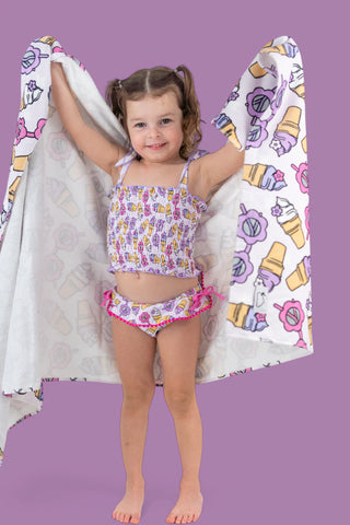 All new and girlie Dream Tankini Two Piece Swim Suit! Made with comfort and stretch in mind, this eye-catching suit features a pom-pom trim and ruffled top and bottom for maximum style and beach-loving vibes. Our UPF 50+ swim fabric will keep your little ones covered under the sunny rays.