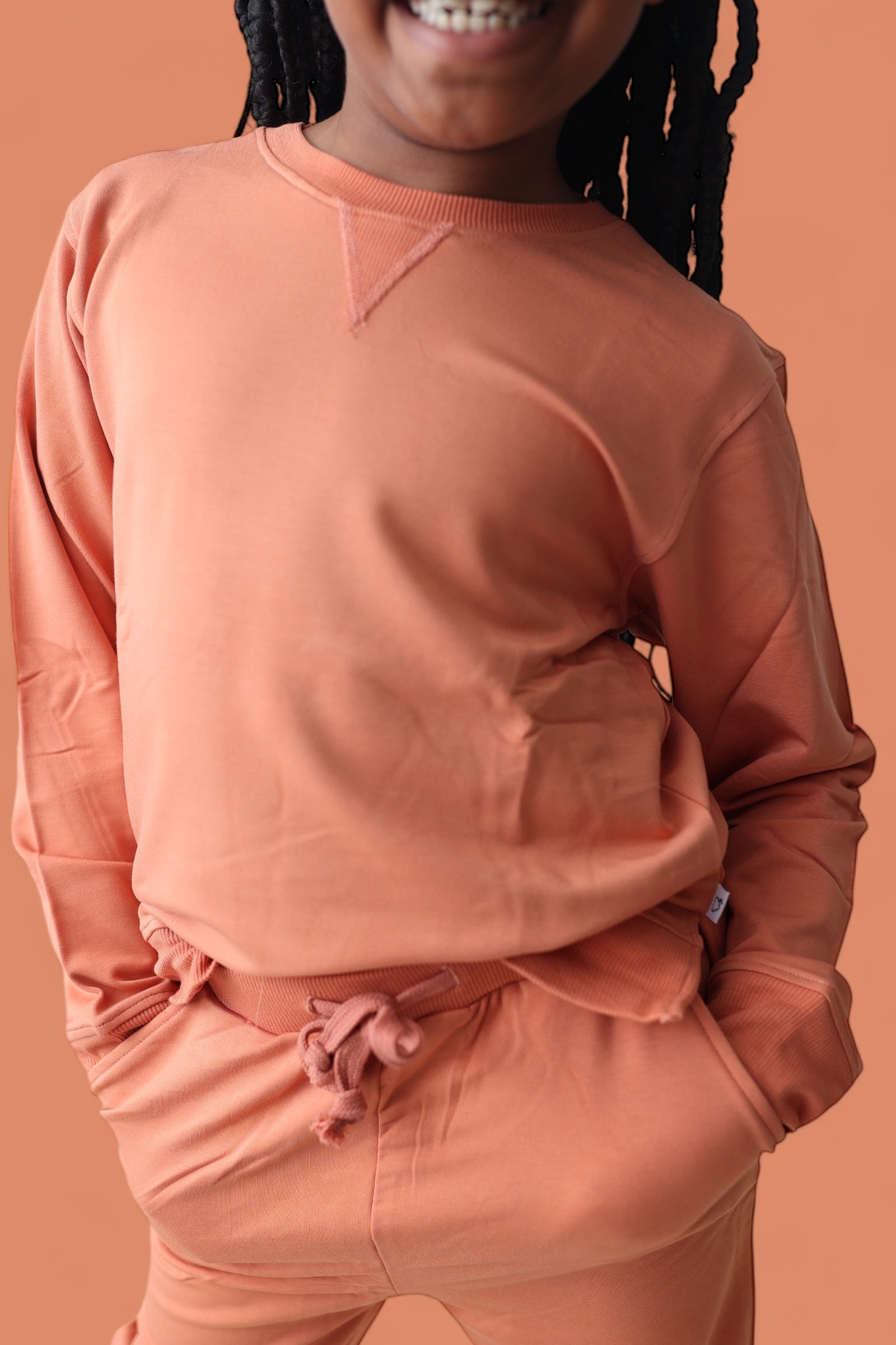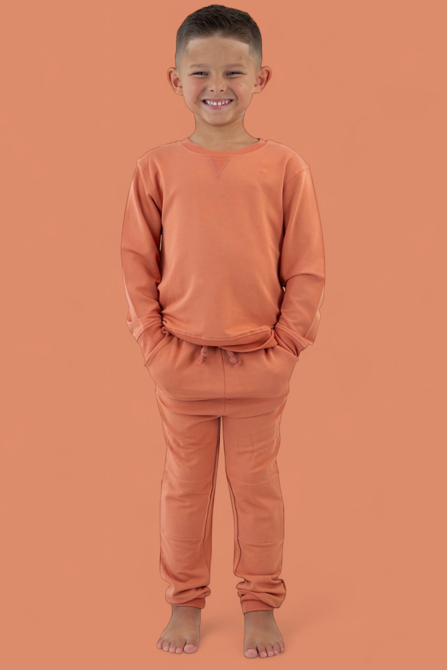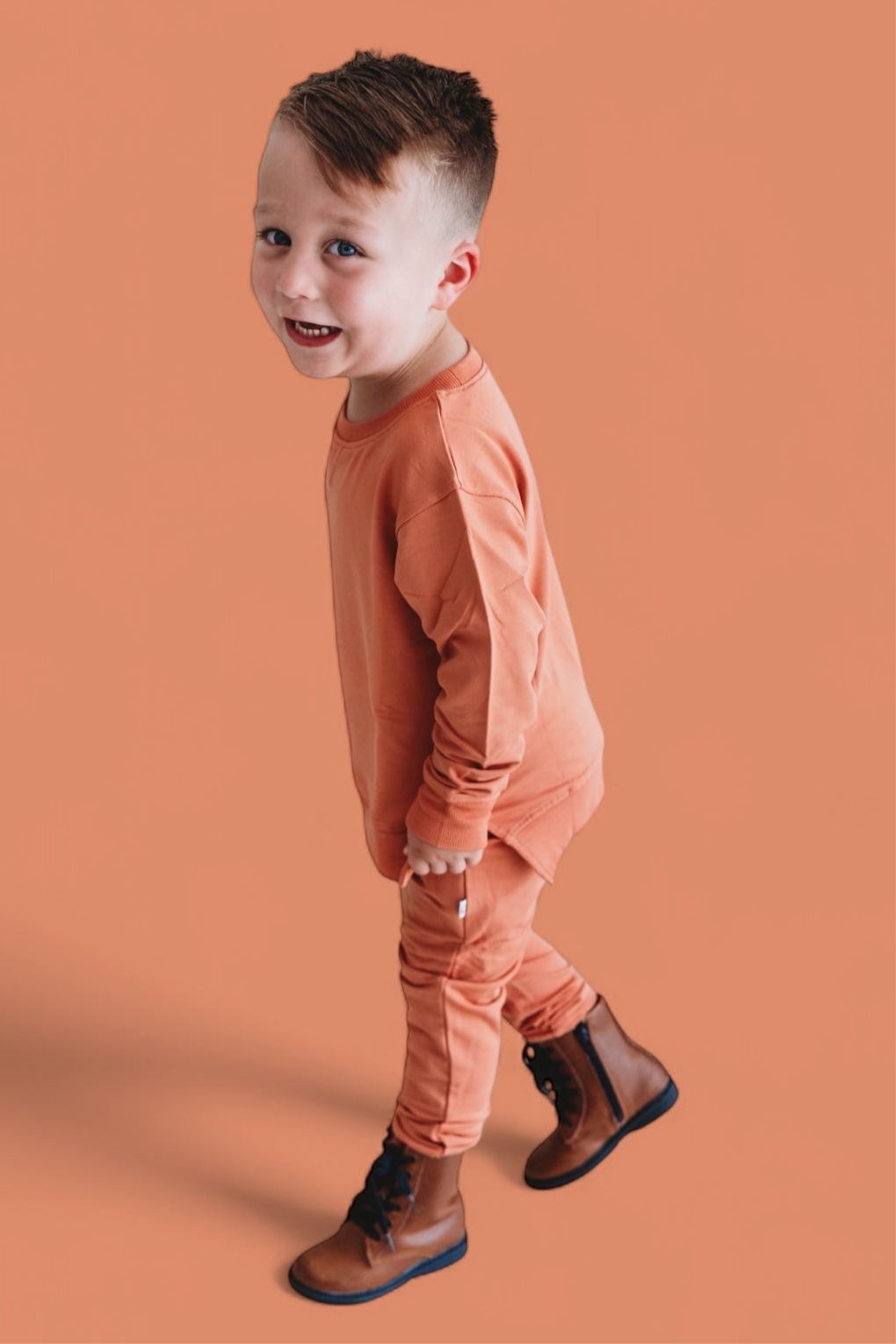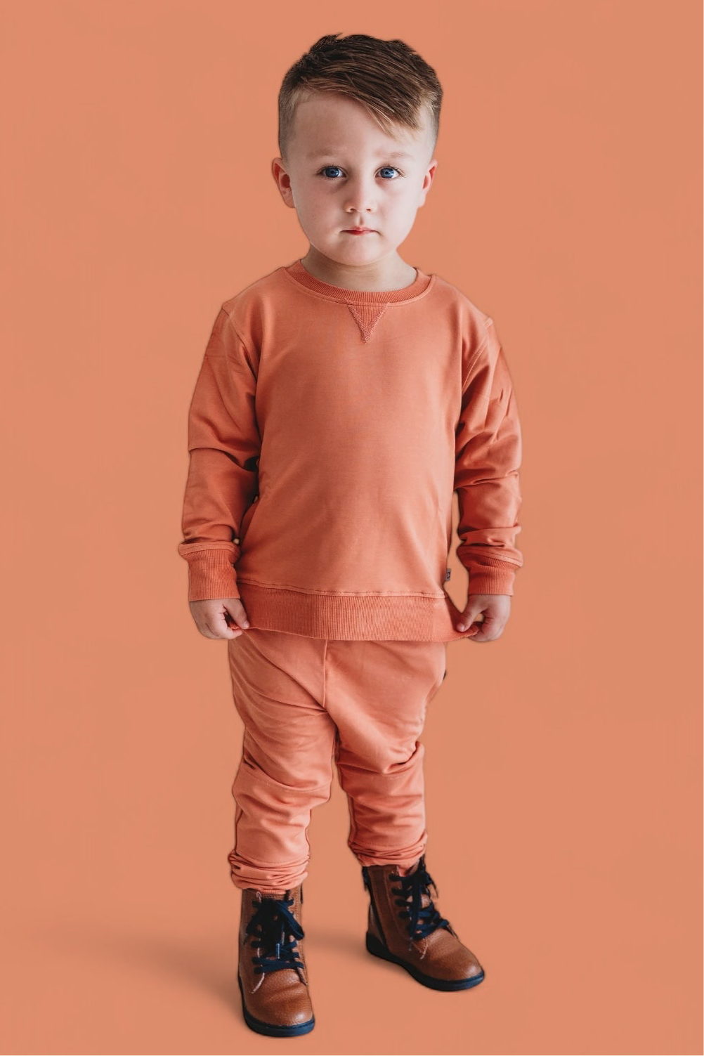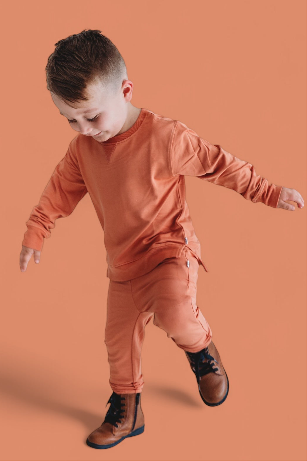 Soft, stylish, and full of autumn charm—the Rust Dream Pullover is the perfect layering piece for your little one. Made from our signature buttery-soft fabric in a warm rust tone, this pullover is ideal for crisp days, cozy nights, and everything in between. With a relaxed fit and ribbed cuffs, it’s as comfy as it is cute.