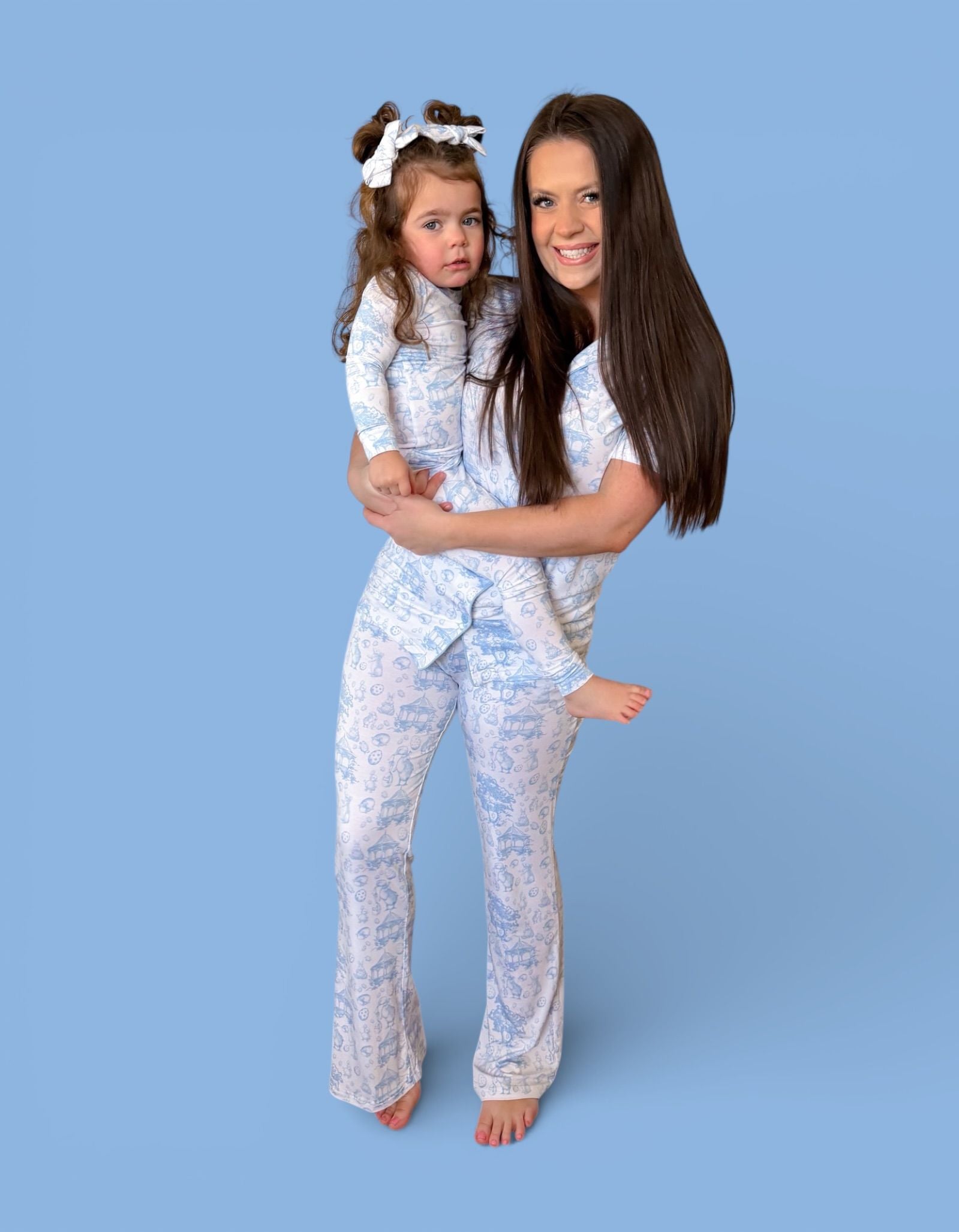 Timeless toile, dreamy comfort. Our Bluebell Easter Toile Women’s Dream Flare Set features an elegant powder-blue Easter toile print with bunnies, spring florals, and whimsical garden scenes — beautifully classic for the season and beyond. Perfect for matching moments, Easter morning, slow weekends, and cozy evenings at home. 🌿✨