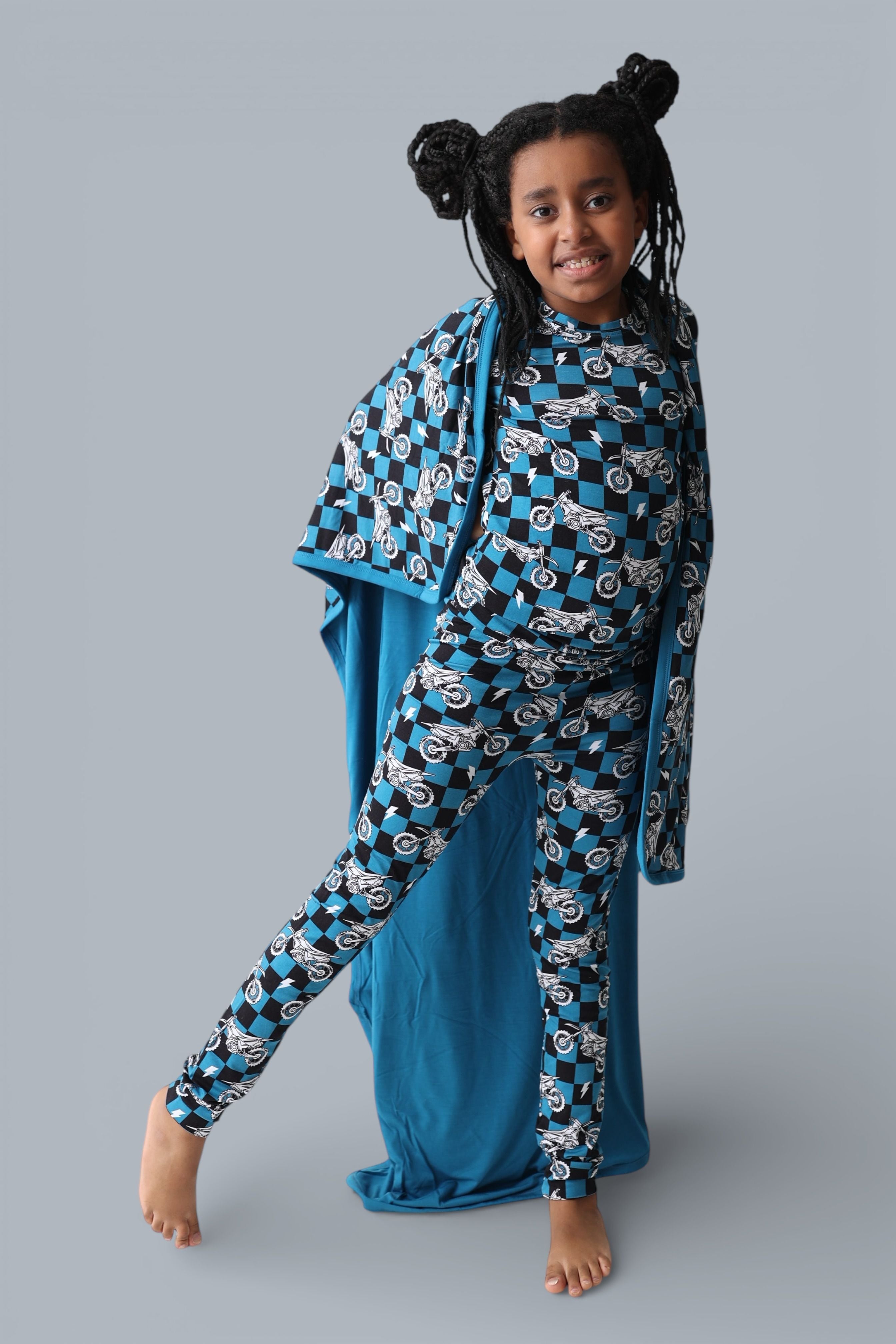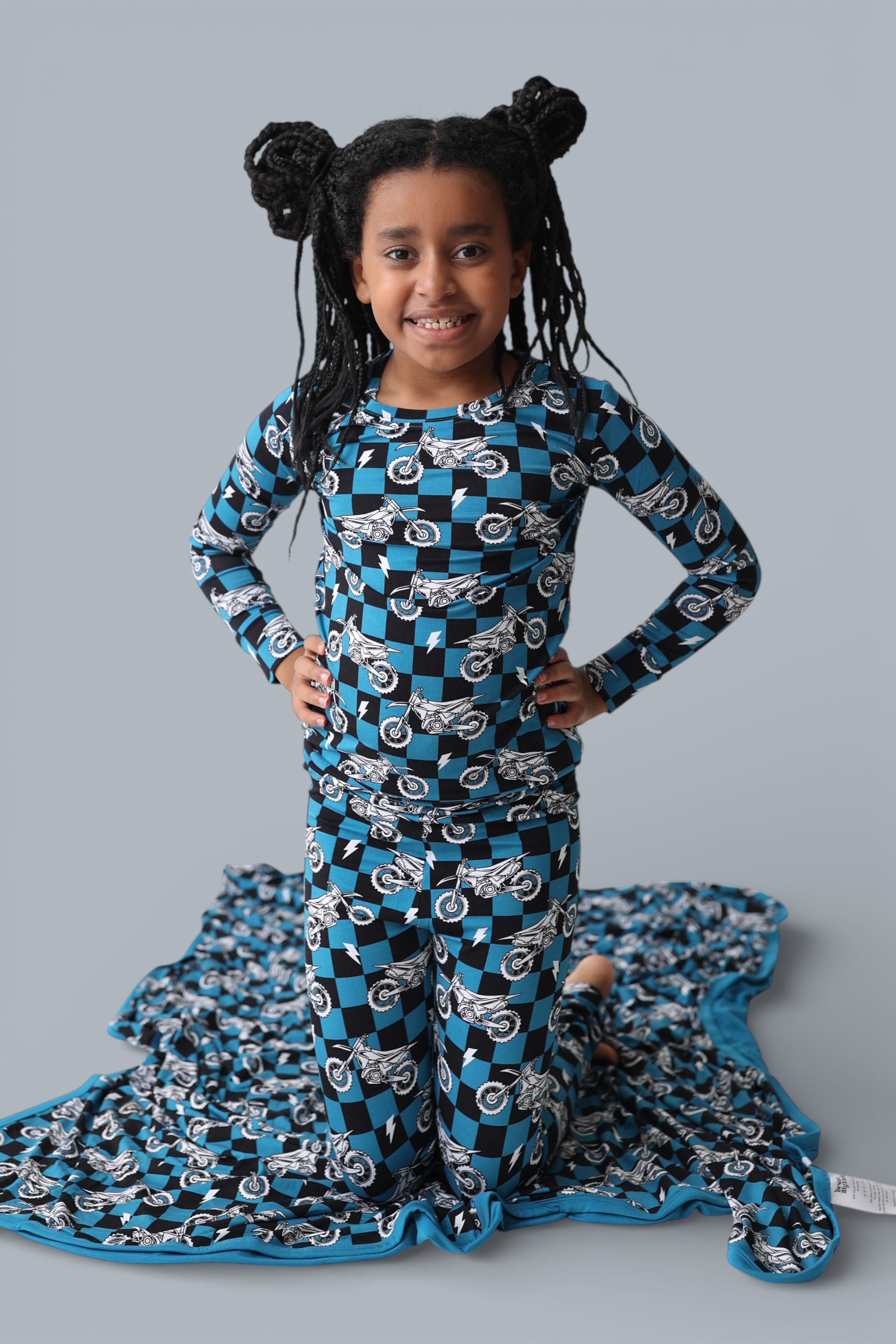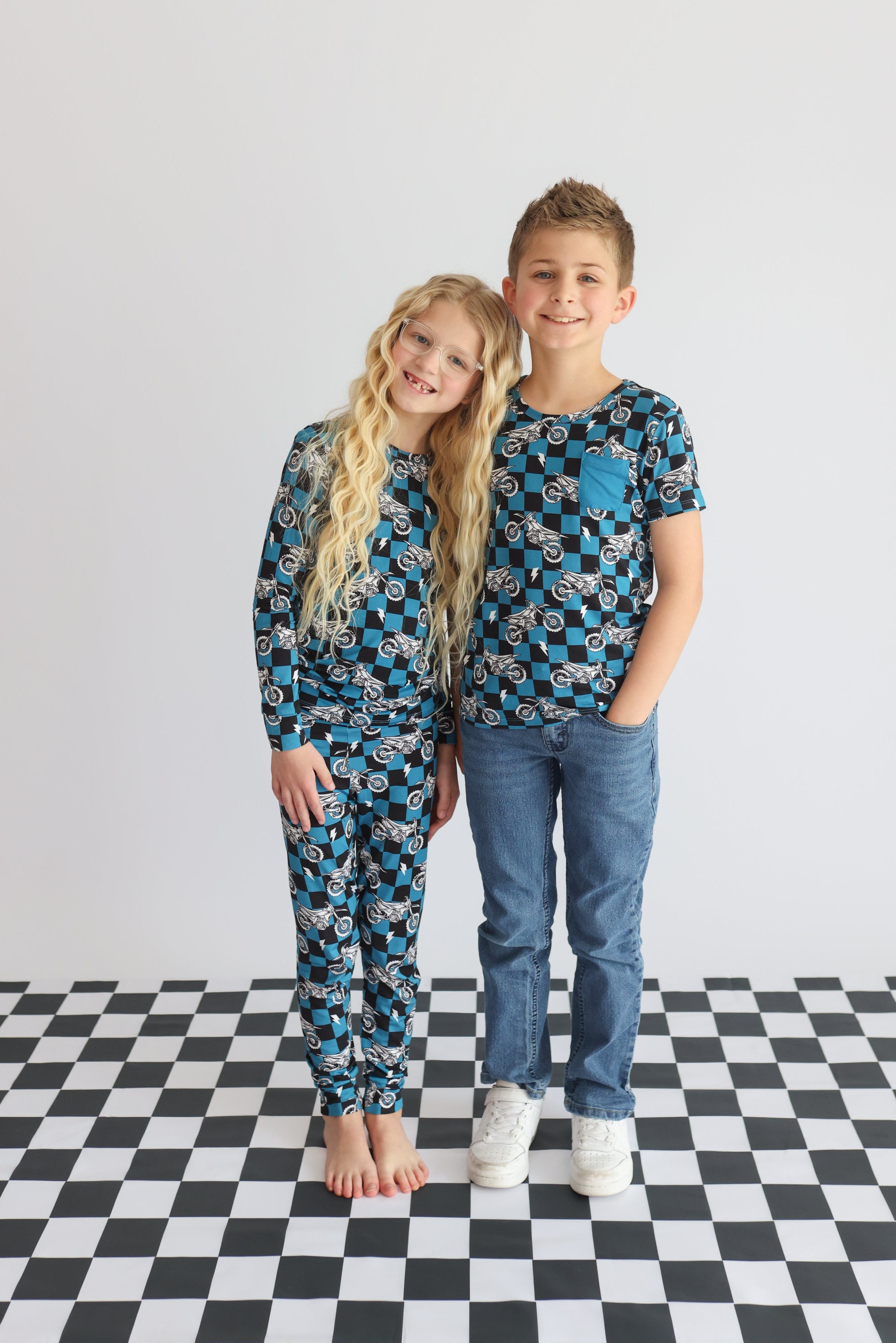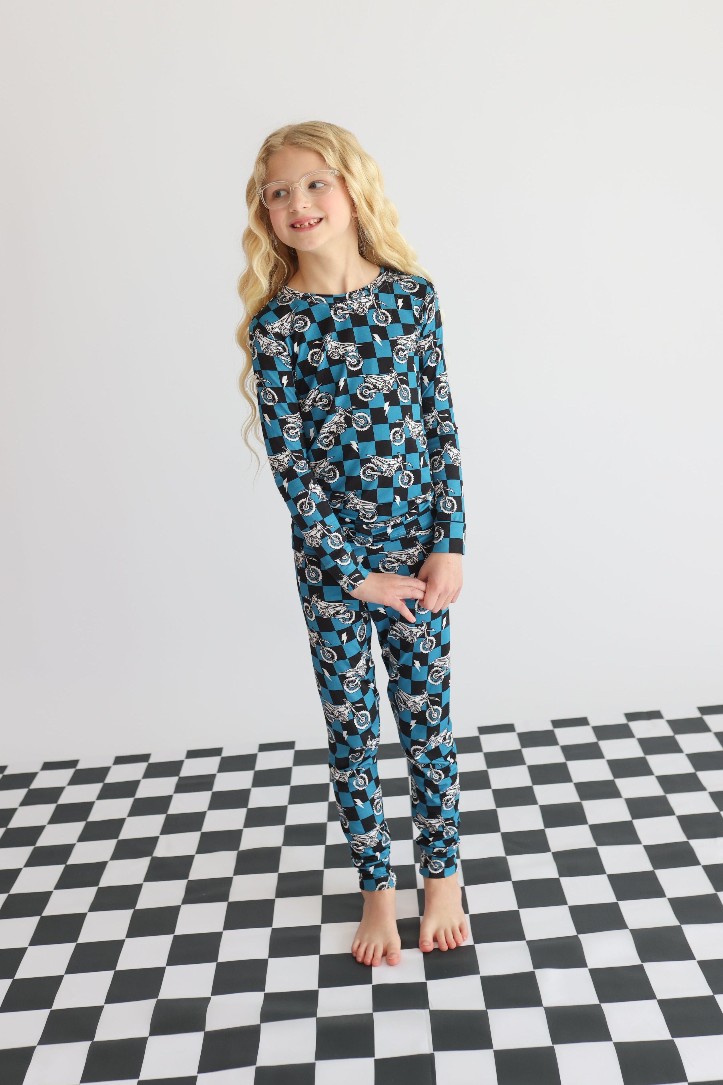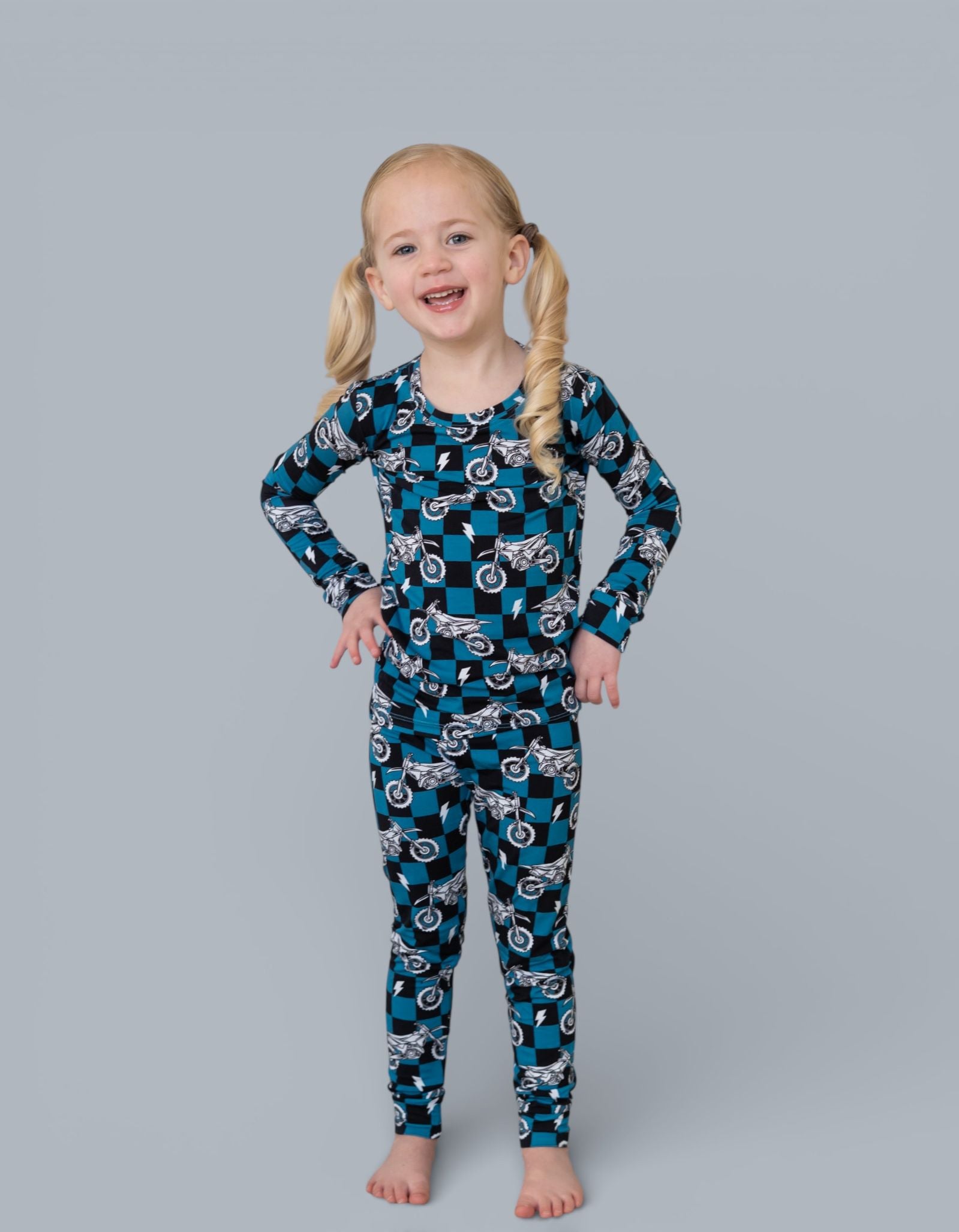 The Moto Mayhem Dream Set is perfect for little ones who love bold prints and all-day comfort. Featuring an edgy motorbike design paired with a classic checkered pattern and lightning bolt accents, this cozy two-piece set is made from our signature buttery-soft bamboo fabric for a breathable, gentle feel from playtime to bedtime.