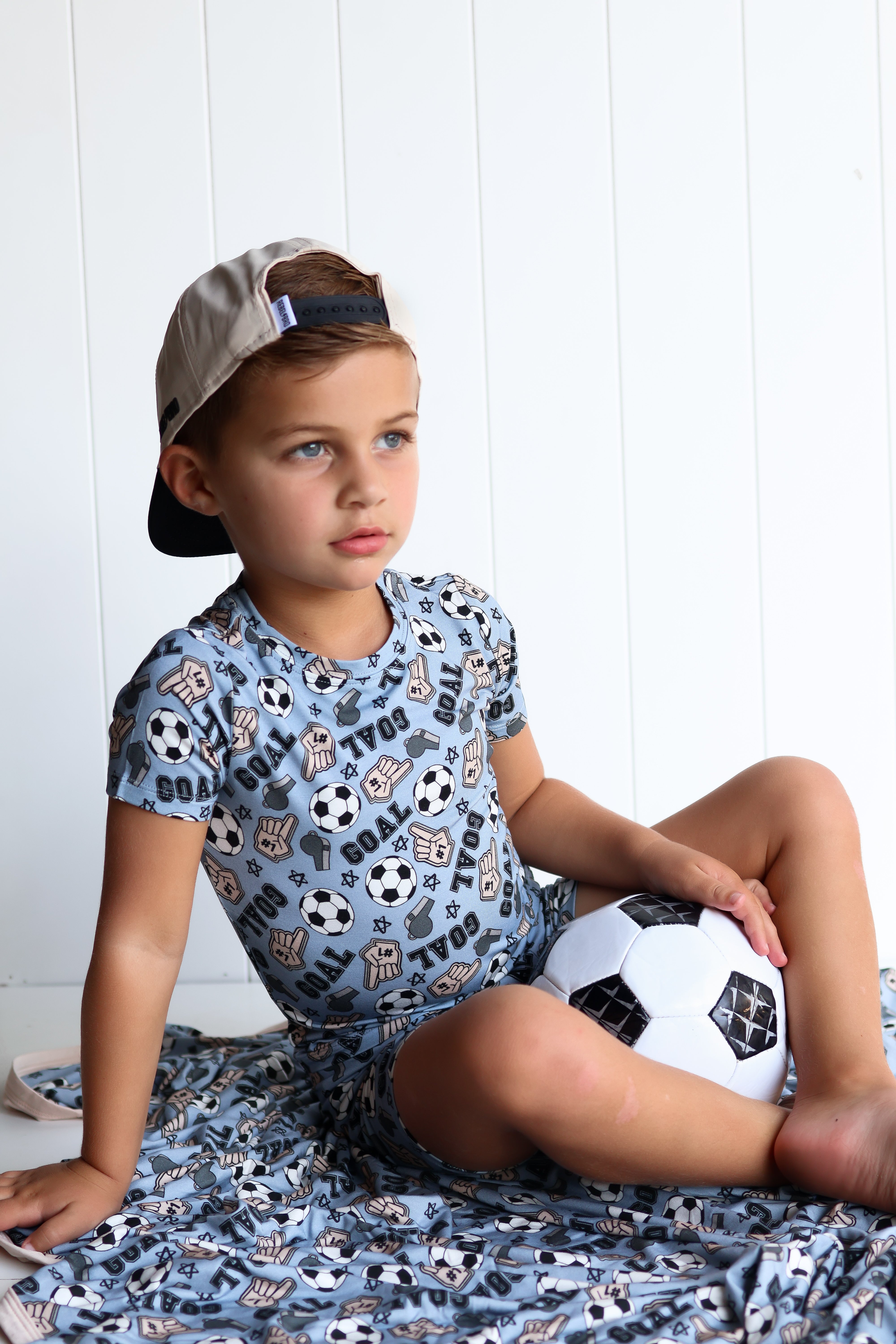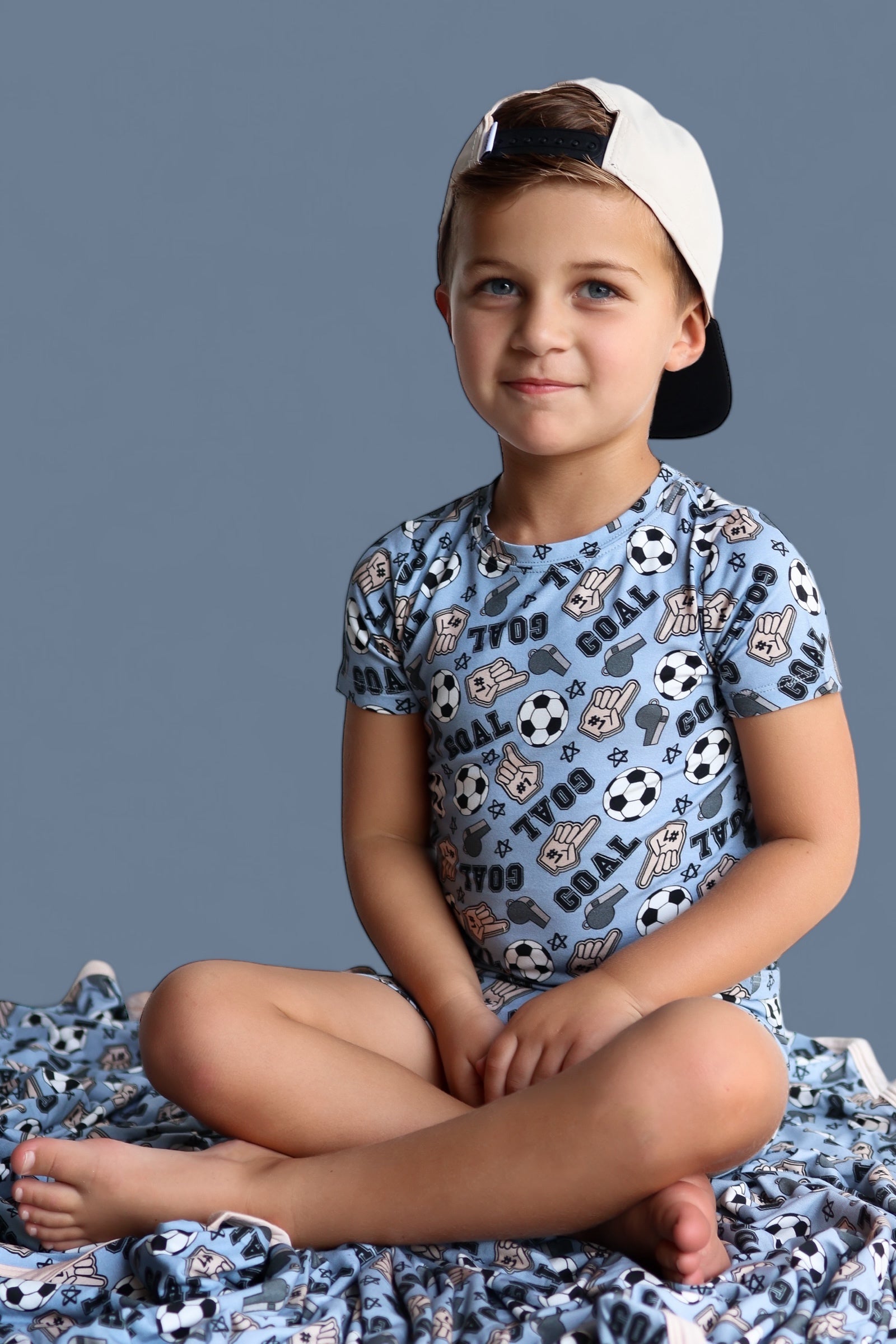 This OH MY GOAL DREAM SHORT SET is perfect for little SOCCER fans! Whether for sleep or play, the fun design and comfortable fit make it a must-have. Show your love for the sport with this exciting set!