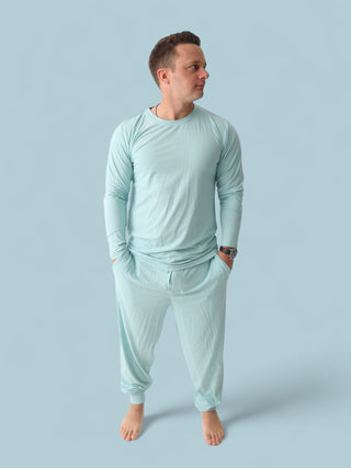 Elevate your loungewear game with our HAZY BLUE RIB DREAM MEN'S JOGGERS! Perfect for the fall season, these joggers combine style and comfort. Say goodbye to plain sweatpants and hello to a little extra flair. Trust us, these joggers are a must-have for any guy looking to up their lounge game. Look for our matching tee to pair with these amazing joggers,