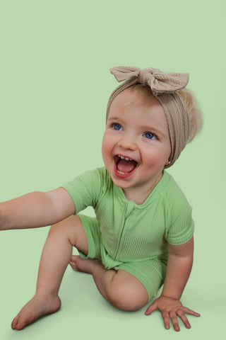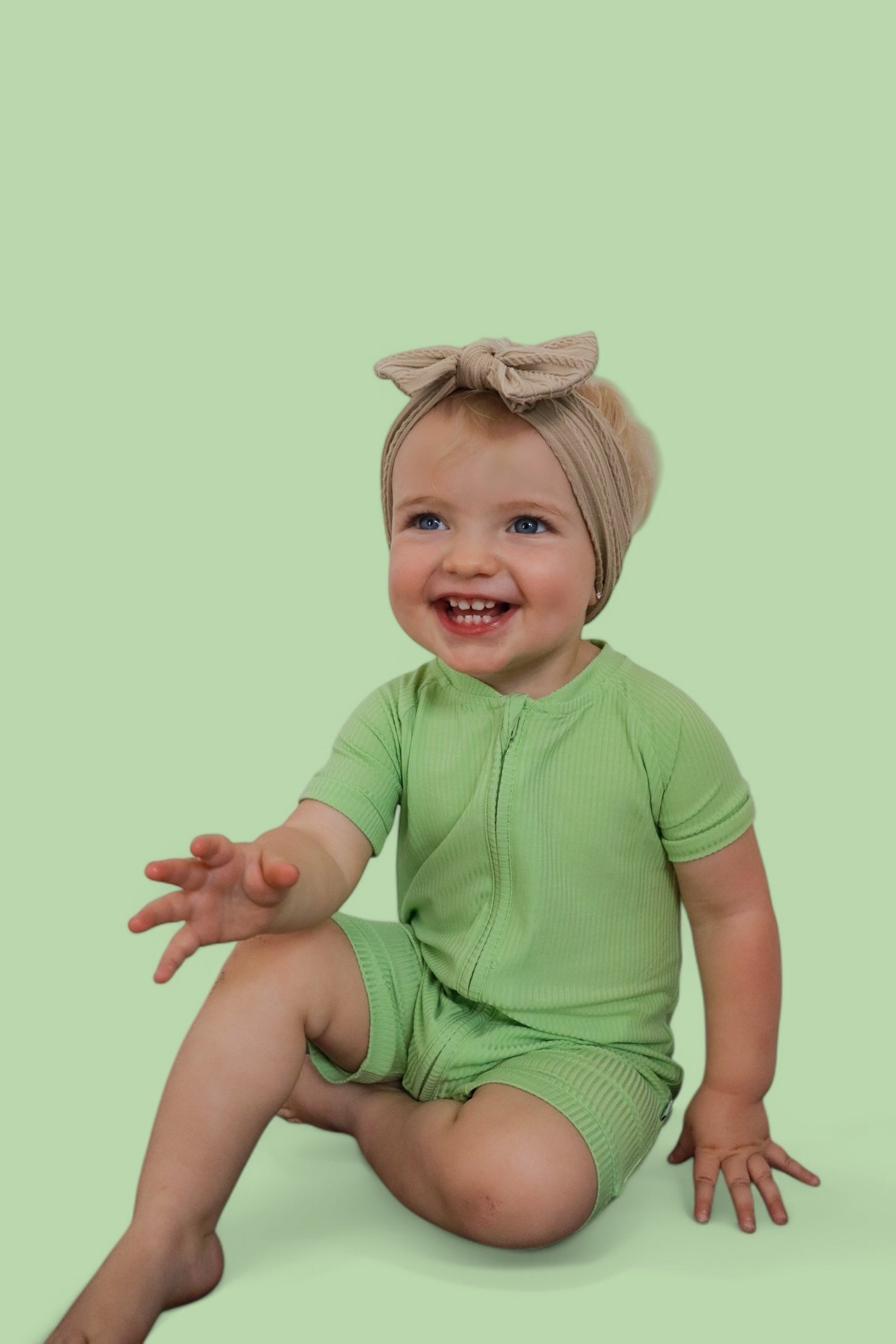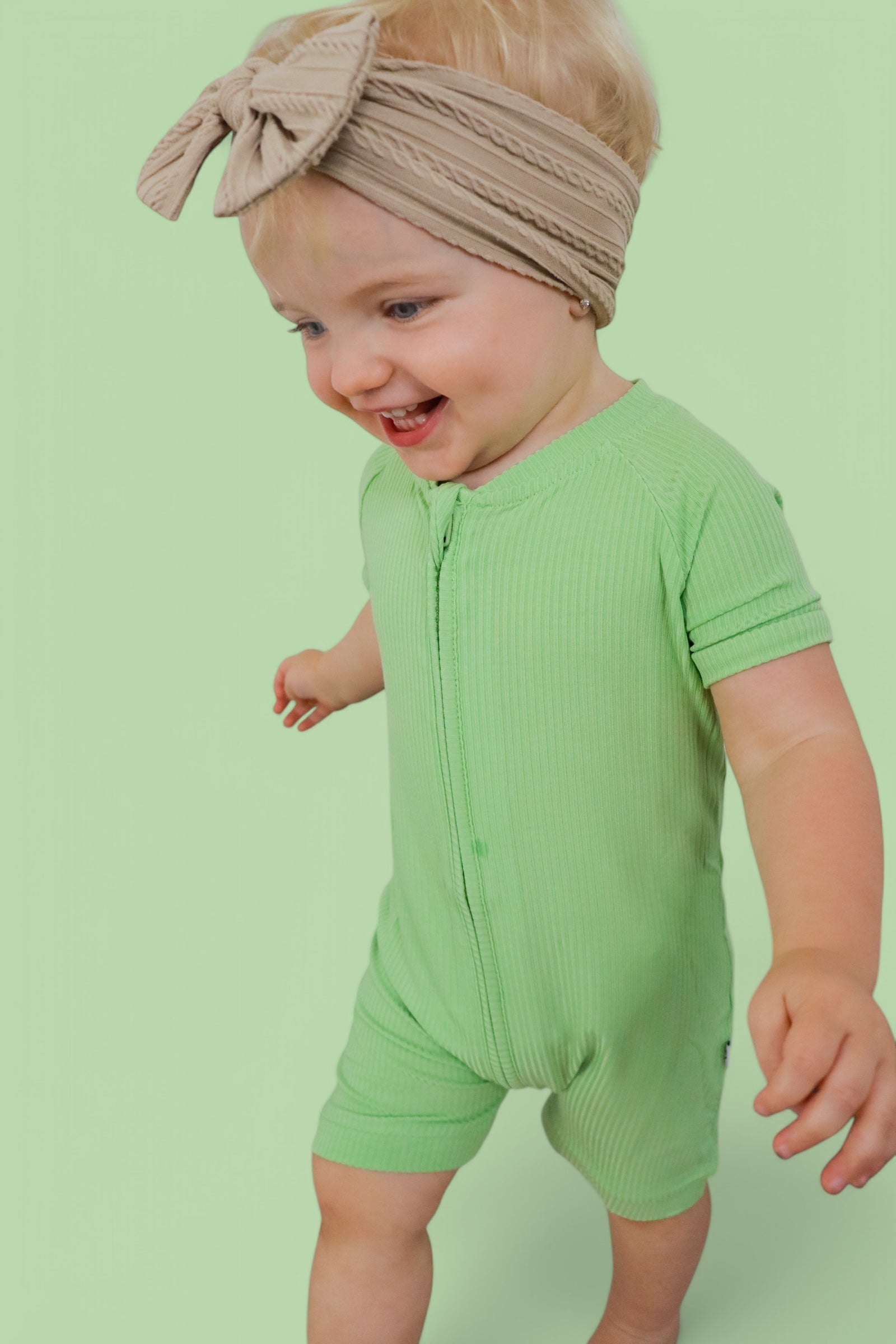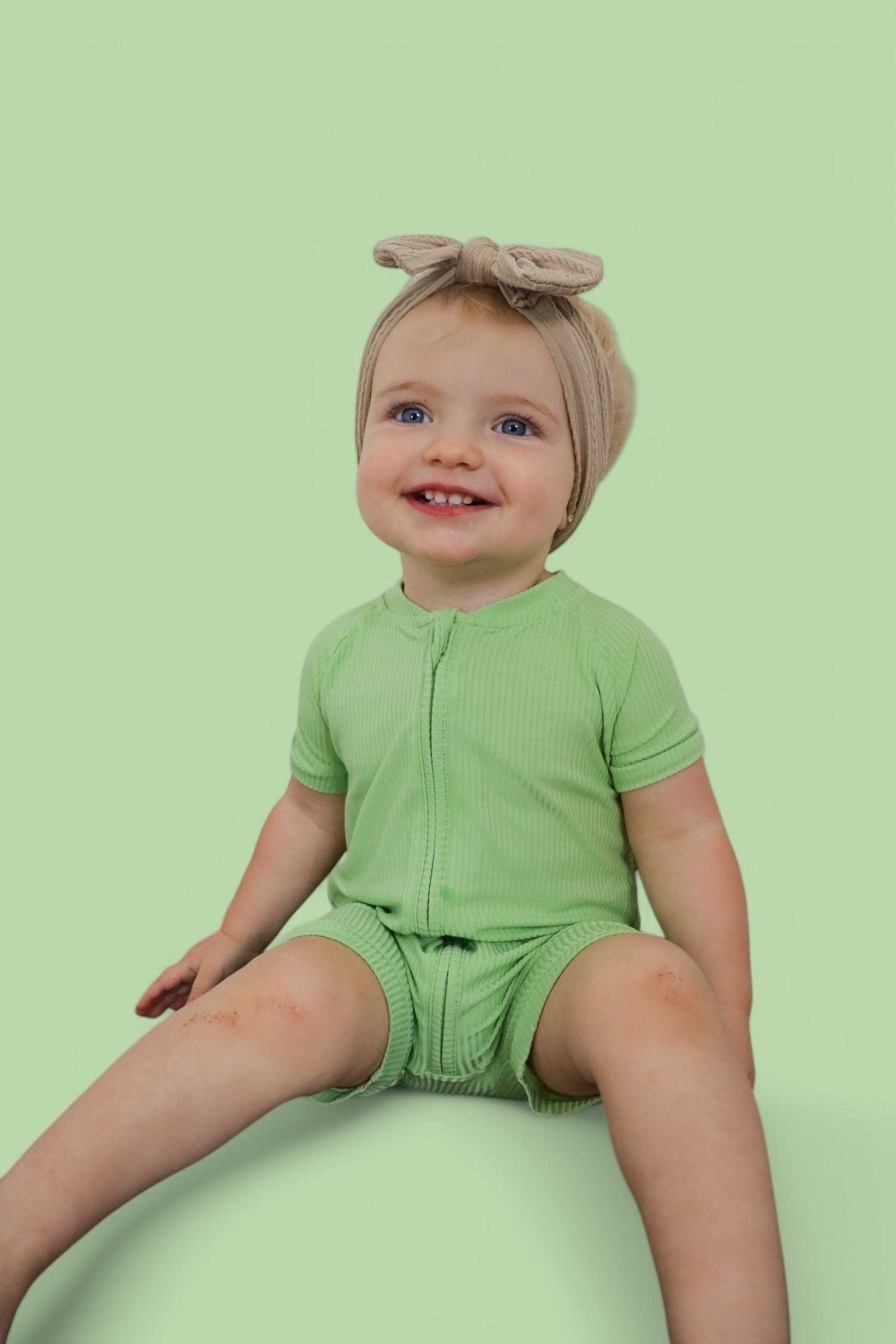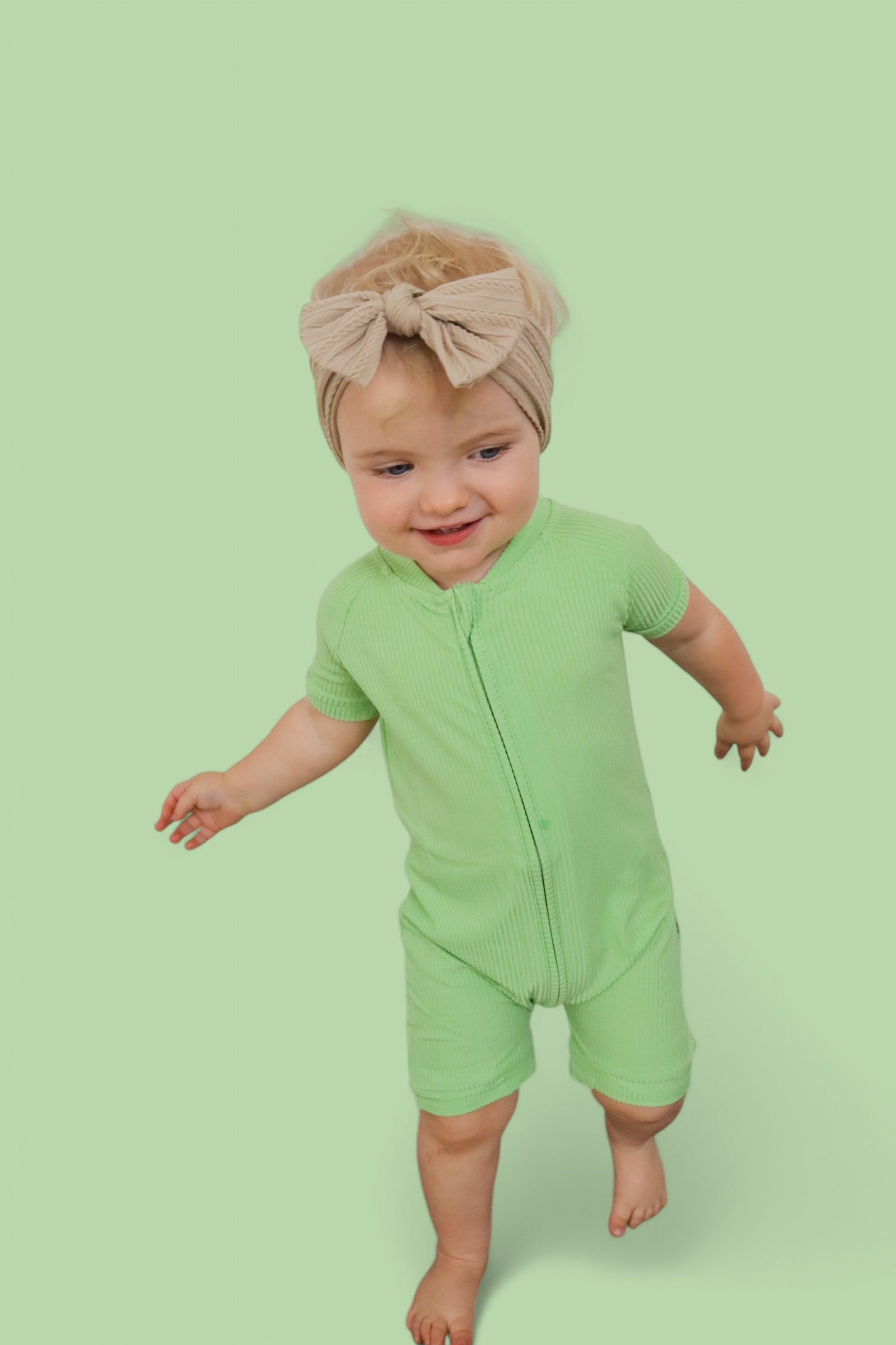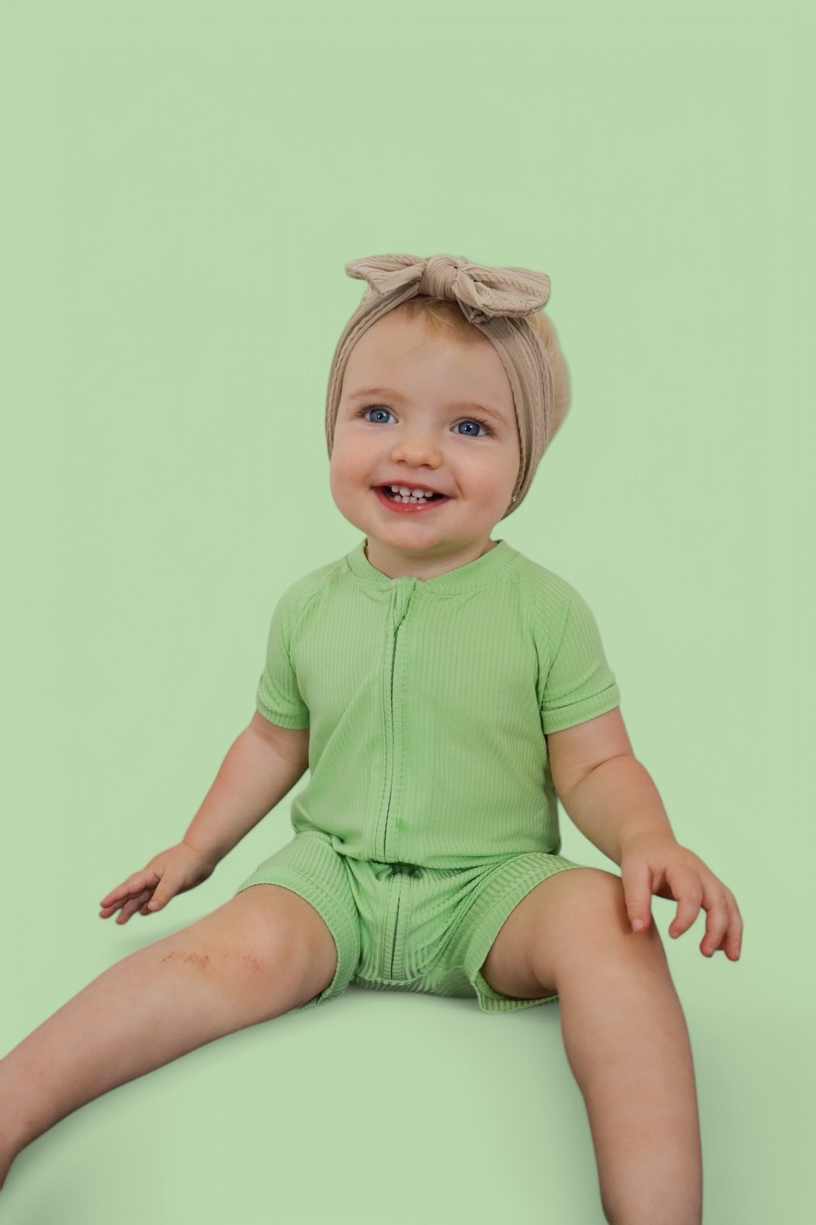 Spring into style with the vibrant Key Lime Dream Shortie! Bursting in a beautiful green shade reminiscent of fresh blooms and sunny days, this short romper is a warm-weather essential. Perfect for playtime adventures, picnics, or nap-time cuddles, the Key Lime Dream Shortie is as versatile as it is adorable.