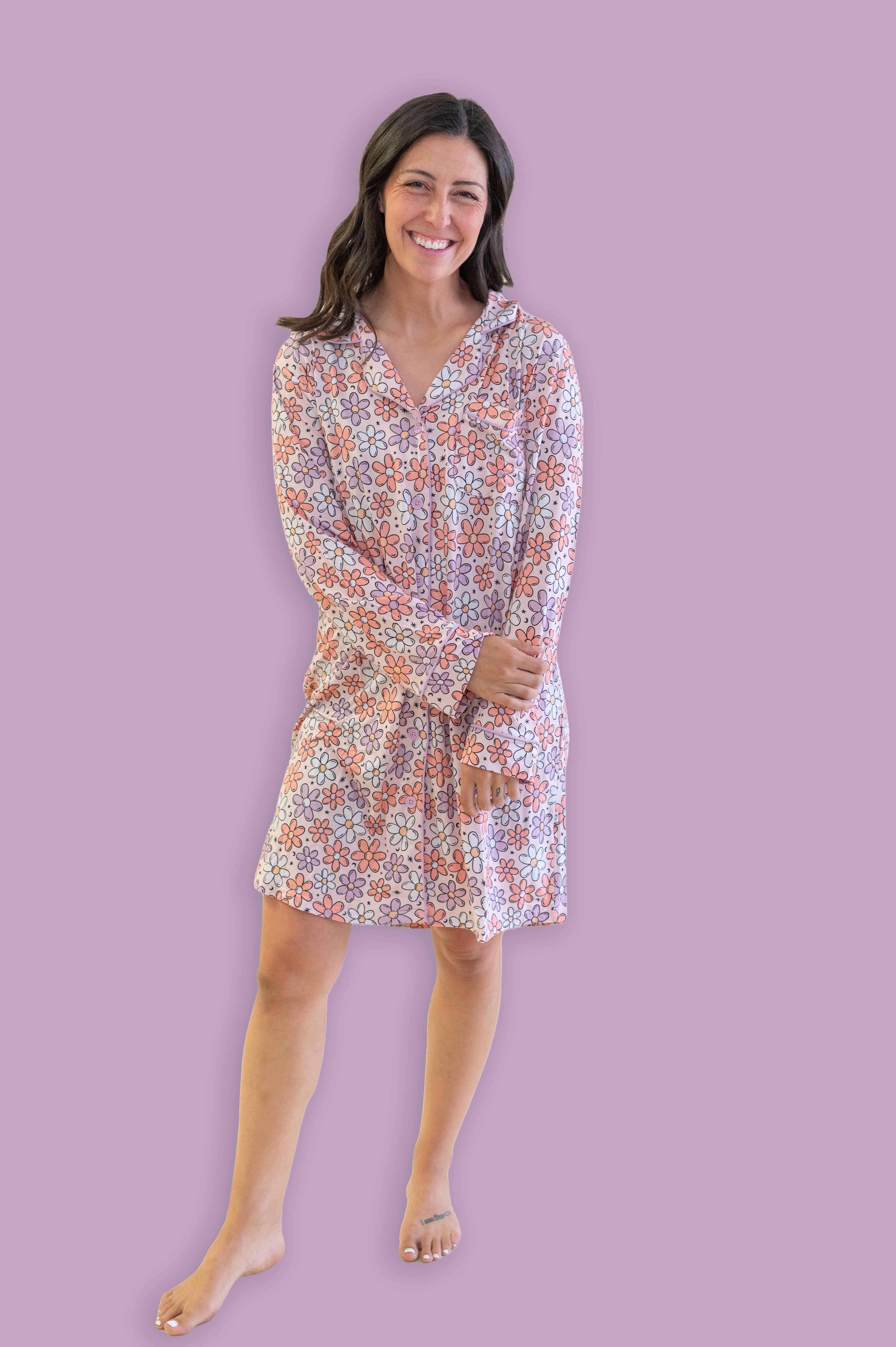 With piping on the edges, a pocket on the chest, and a button-down for easy nursing, this night gown will keep you comfy and stylish. Plus, it hits right above the knee.