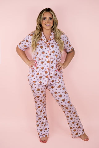 Treat yourself to our Exclusive Highland Cutie Women's Relaxed Flare Dream Set. Made with soft, bamboo material, it's perfect for lounging or sleeping. The playful cow print adds a quirky touch to the short sleeve, button down design. Feel comfortable and cute at the same time!