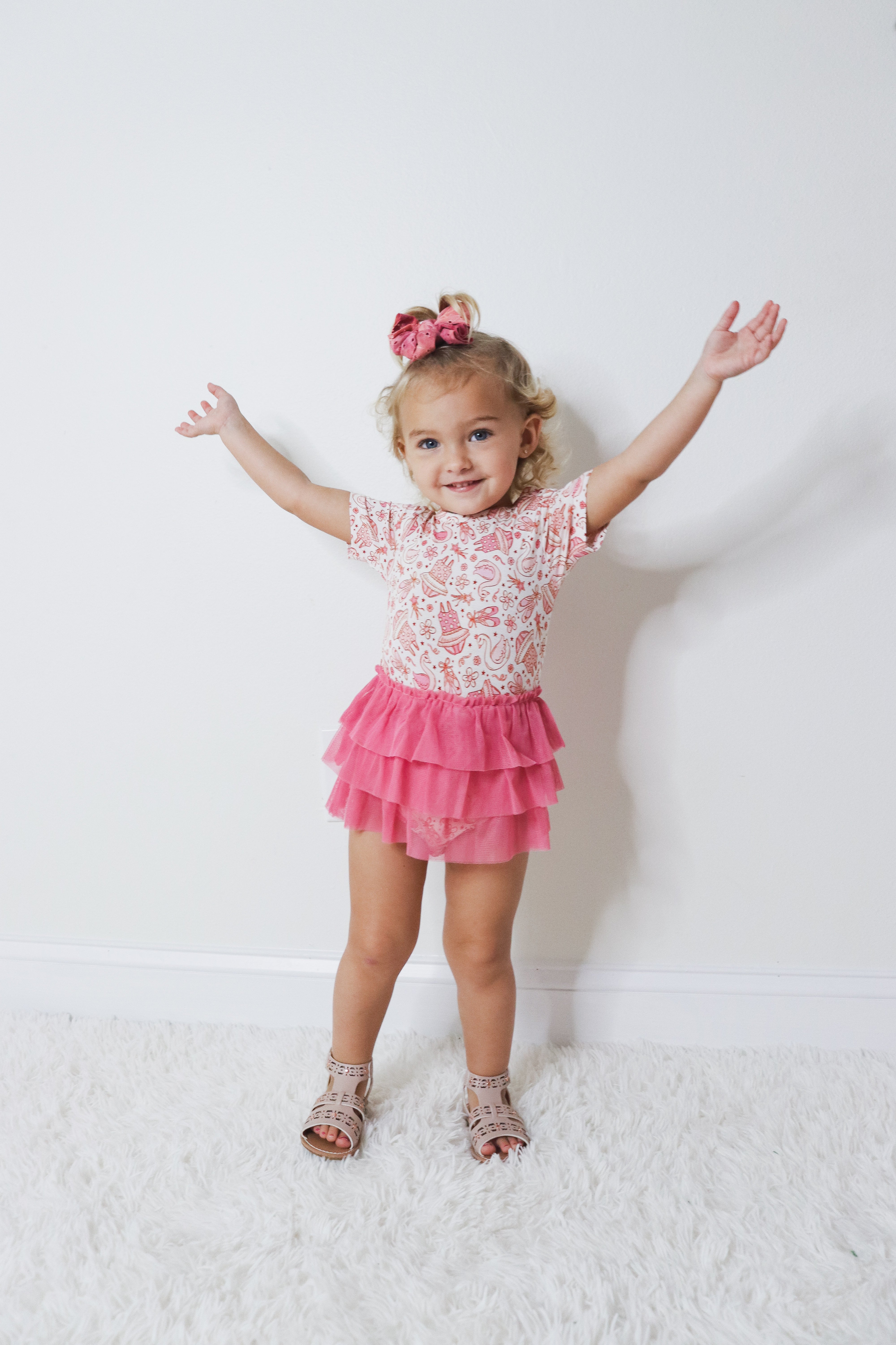 Made from the softest and most breathable bamboo viscose material, your babe won't want to take this off! Designed for all the love and extra snuggles! Easy diaper changes, you got it-made with 3 easy to remove snaps and added tutu detail for all your party fun!