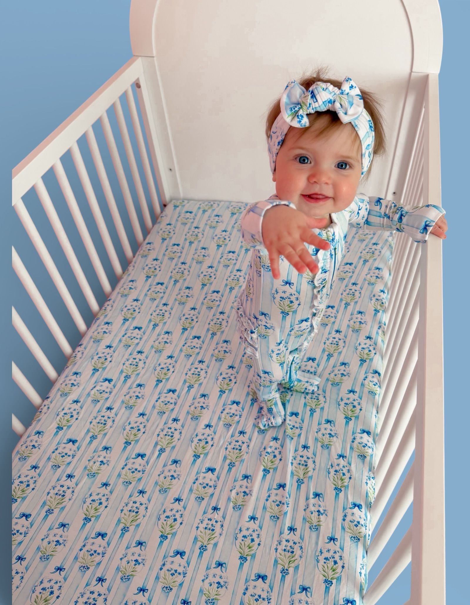 Made with our signature Dream fabric — soft, stretchy, and gentle for all-day wear — this bow stays comfy without squeezing and pairs effortlessly with every piece in the Heirloom Blue Blooms collection. ☁️🤍