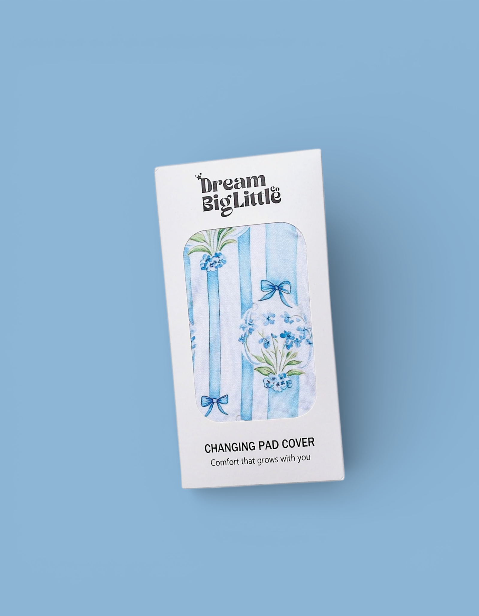 Pretty florals for the sweetest diaper changes. Our Heirloom Blue Blooms Dream Changing Pad Cover features delicate blue floral bouquets with soft ribbon accents and classic stripe detailing — a timeless, elegant touch for any nursery. Fresh, vintage-inspired, and perfect for spring styling. ✨💐