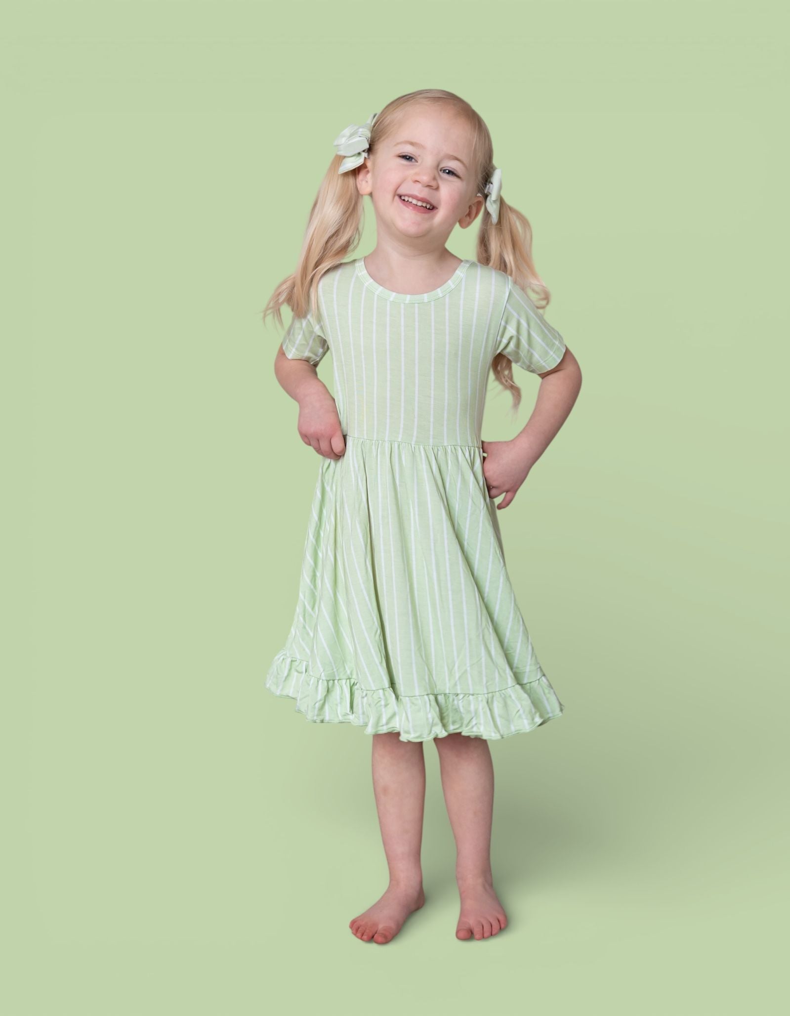 Made with our signature Dream fabric — buttery soft, ultra-stretchy, and breathable — this dress keeps your little one comfy through play, photos, and all the moments in between. The fluttery ruffle detailing adds a girly finish while staying lightweight and easy to move in. ☁️🤍