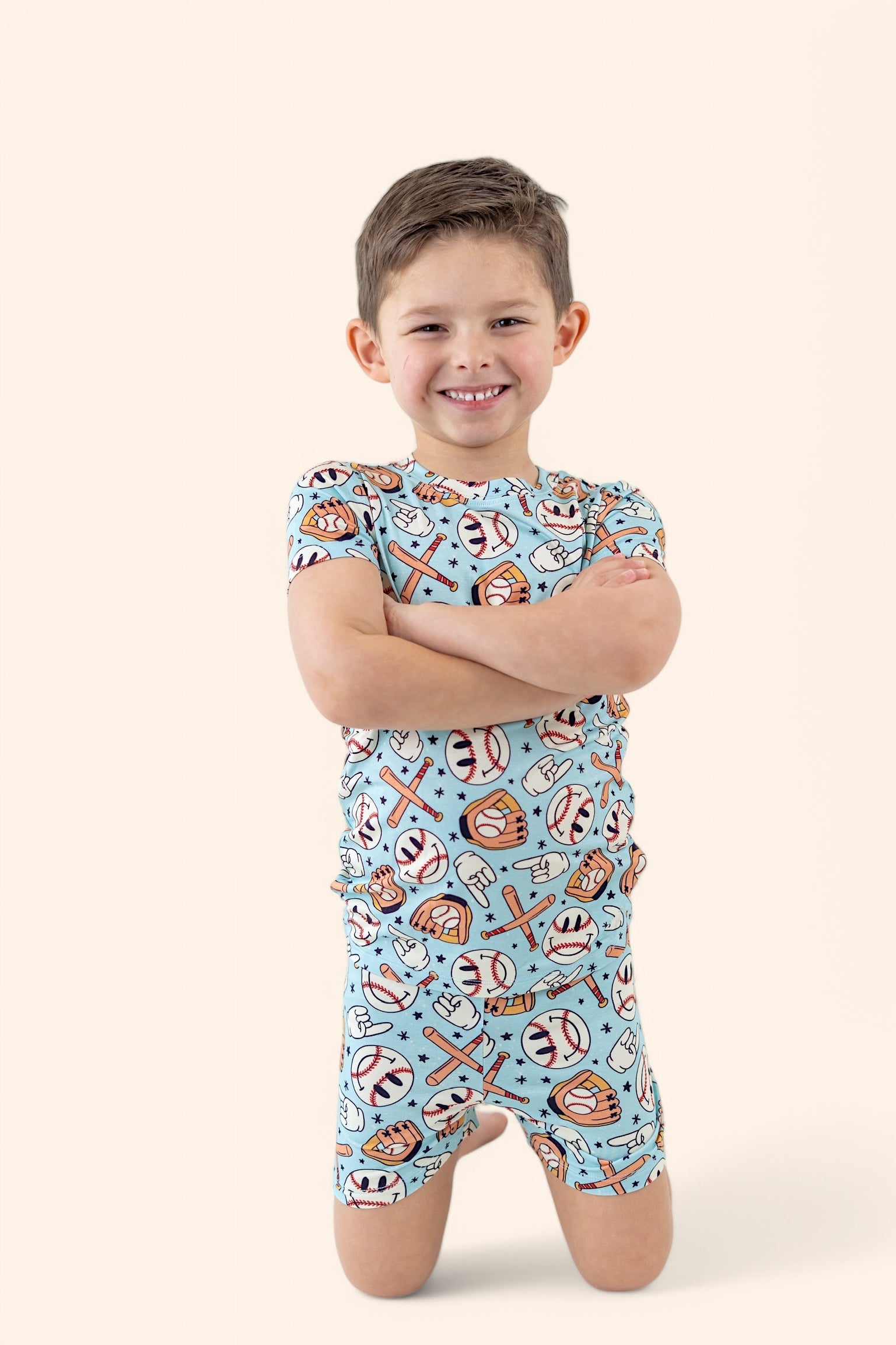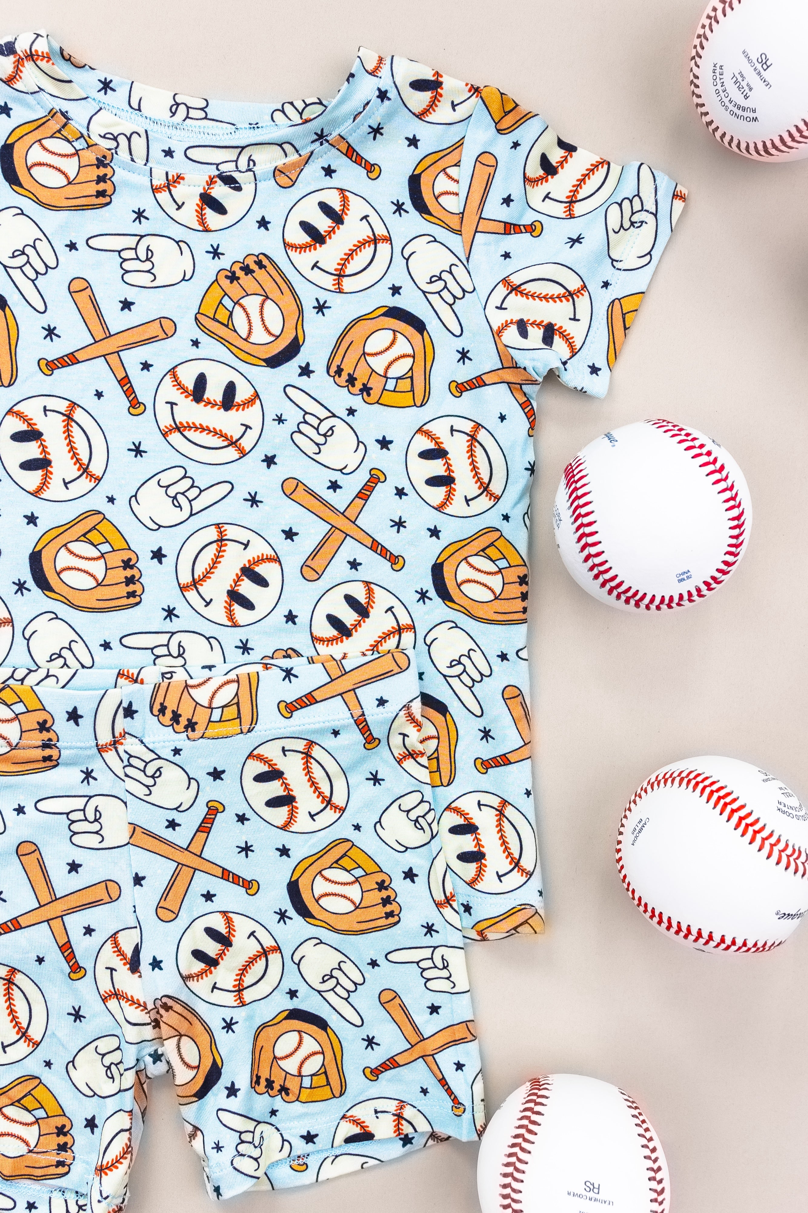 Whether it’s time to run the bases or drift off to dreamland, the Baseball Smiley Dream Short Set is the perfect gear for comfort, smiles, and sporty style.