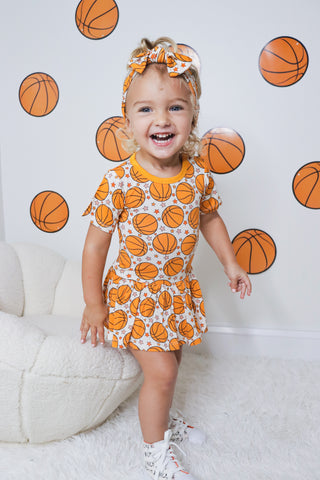 Score a home run in style with our Dirt & Daisies Dream Bodysuit Dress. This fun girl baseball print is the perfect blend of playful and comfy, thanks to the bamboo material and softness of the dress. Short sleeves add a touch of sass. Get ready to be a hit at any event!