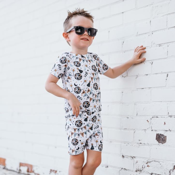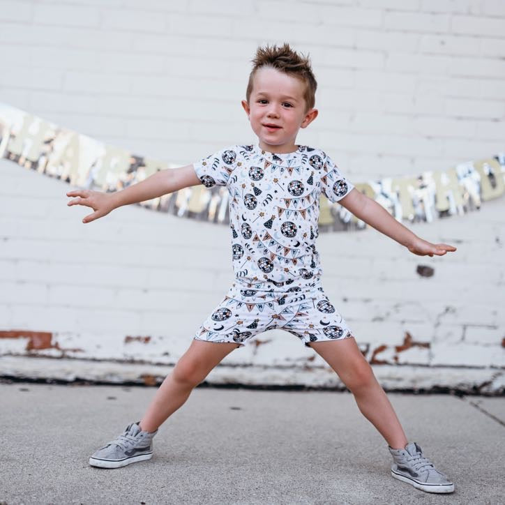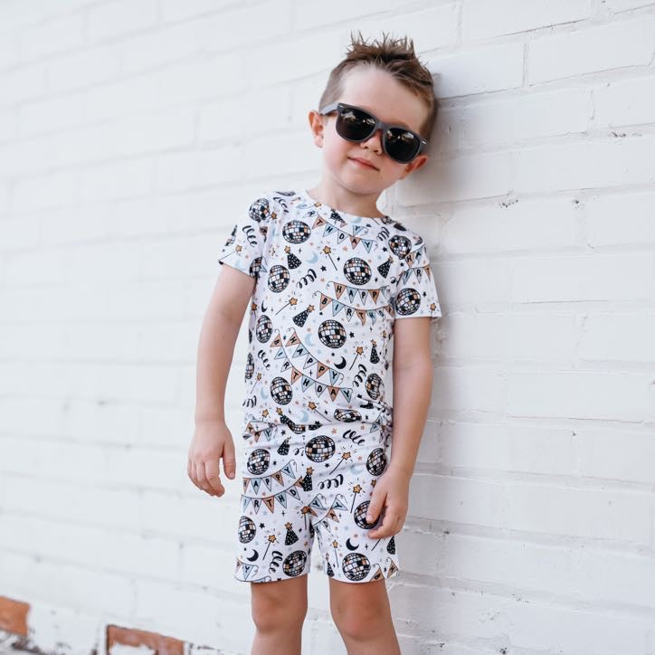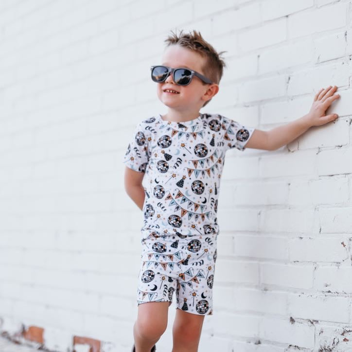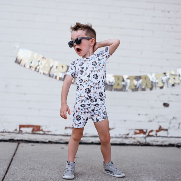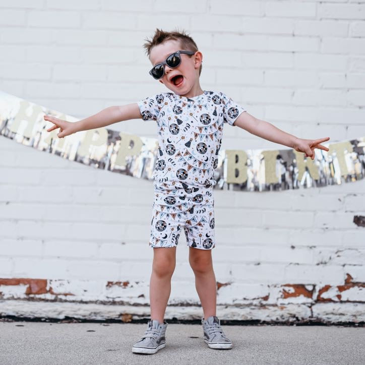 Let the Disco Birthday Boy Dream Short Set rock your next sleepover! This funky outfit is sure to make a statement with its top and bottom bamboo pajamas. Whether you're dancing all night long or enjoying a movie marathon, it's a bangin' way to make sure you get your sleep on!