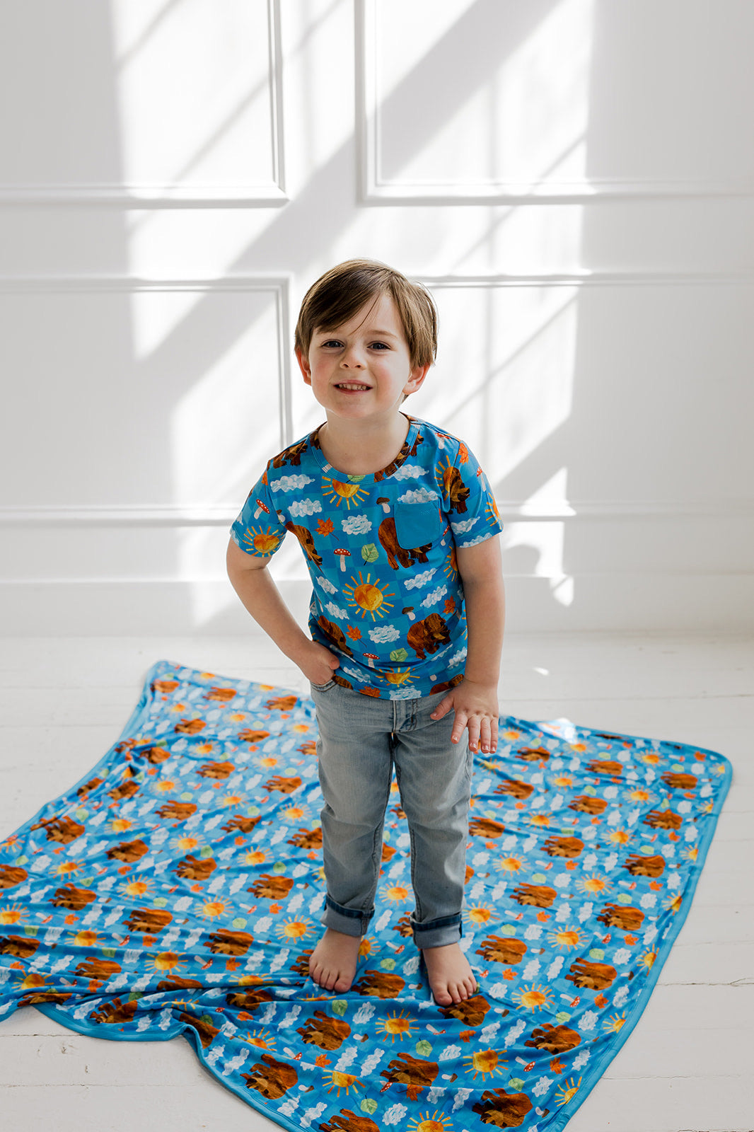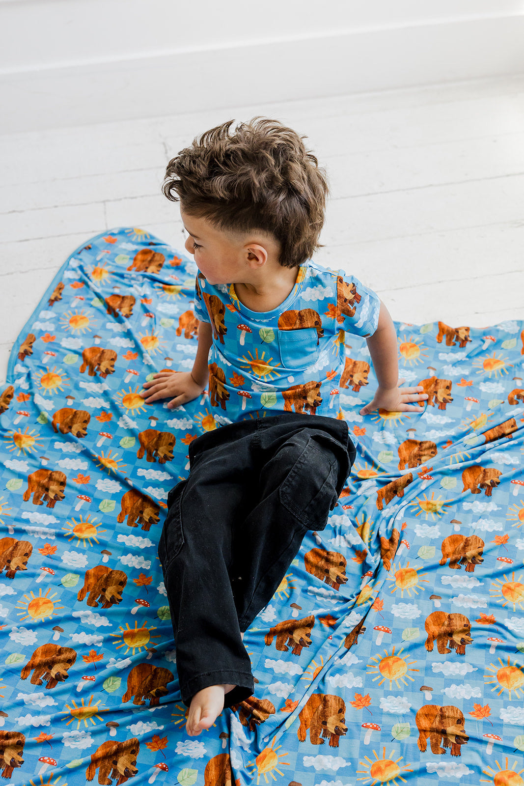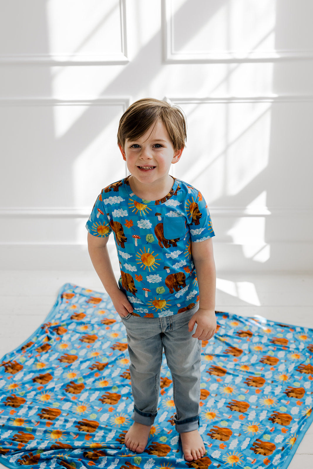 The Bear-y Blue Skies Dream Pocket Tee brings storybook charm to everyday wear. Part of the DBLC x The World of Eric Carle collaboration, this cheerful print features friendly bears, sunny skies, fluffy clouds, mushrooms, and leafy details for a fun, outdoorsy look. Made from our signature buttery-soft bamboo fabric with a classic pocket detail, it’s lightweight, breathable, and perfect for play, lounging, and matching moments.
