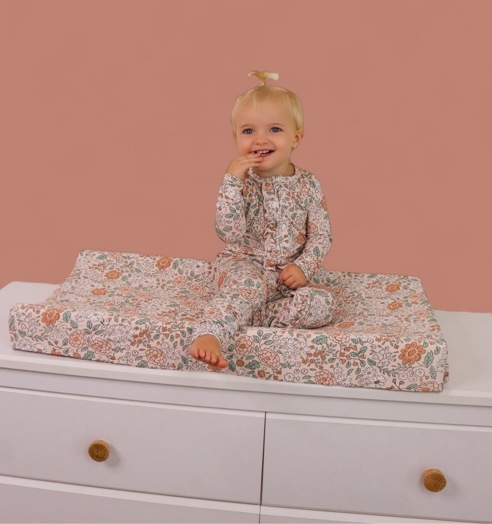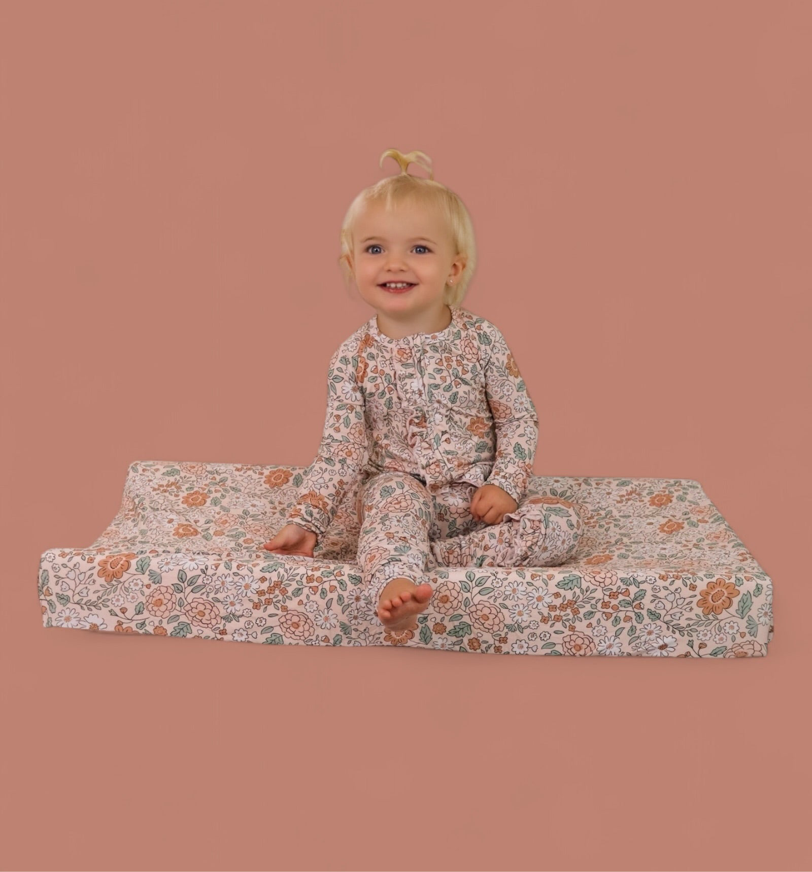 Make every diaper change a little more beautiful with the Autumn Blossom Dream Changing Pad Cover! Covered in a vintage-inspired floral print with soft fall tones, this changing pad adds charm to your nursery while keeping baby comfy. Crafted with a buttery-soft surface and easy-to-clean design, it’s as practical as it is pretty.