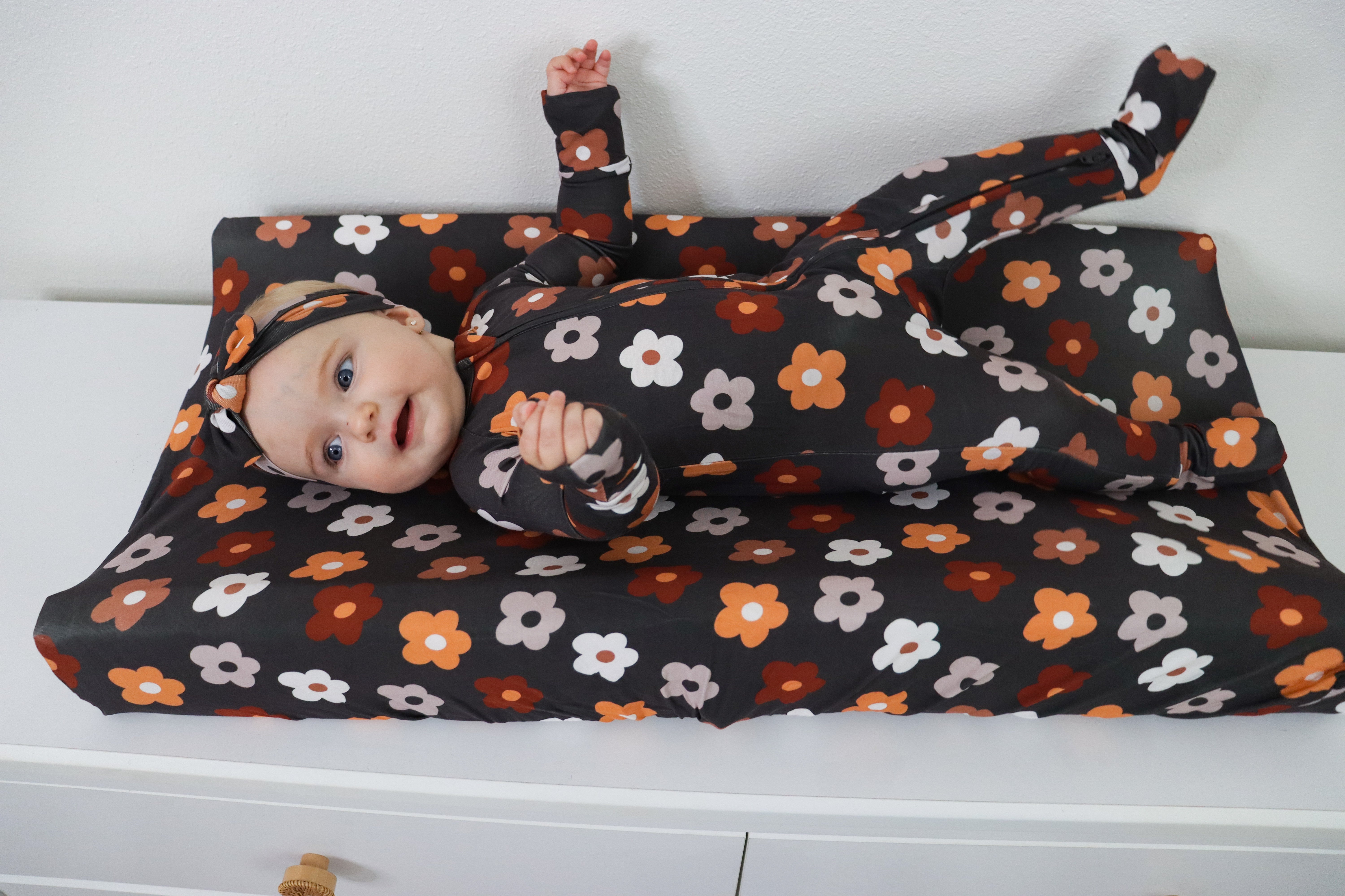 Elevate your fall decor in the nursery with our NEUTRAL DAISIES DREAM CHANGING PAD COVER. The beautiful neutral daisy pattern adds a touch of sophistication, while providing a soft and comfortable surface for your little one. Keep your changing area stylish and functional with this must-have accessory.