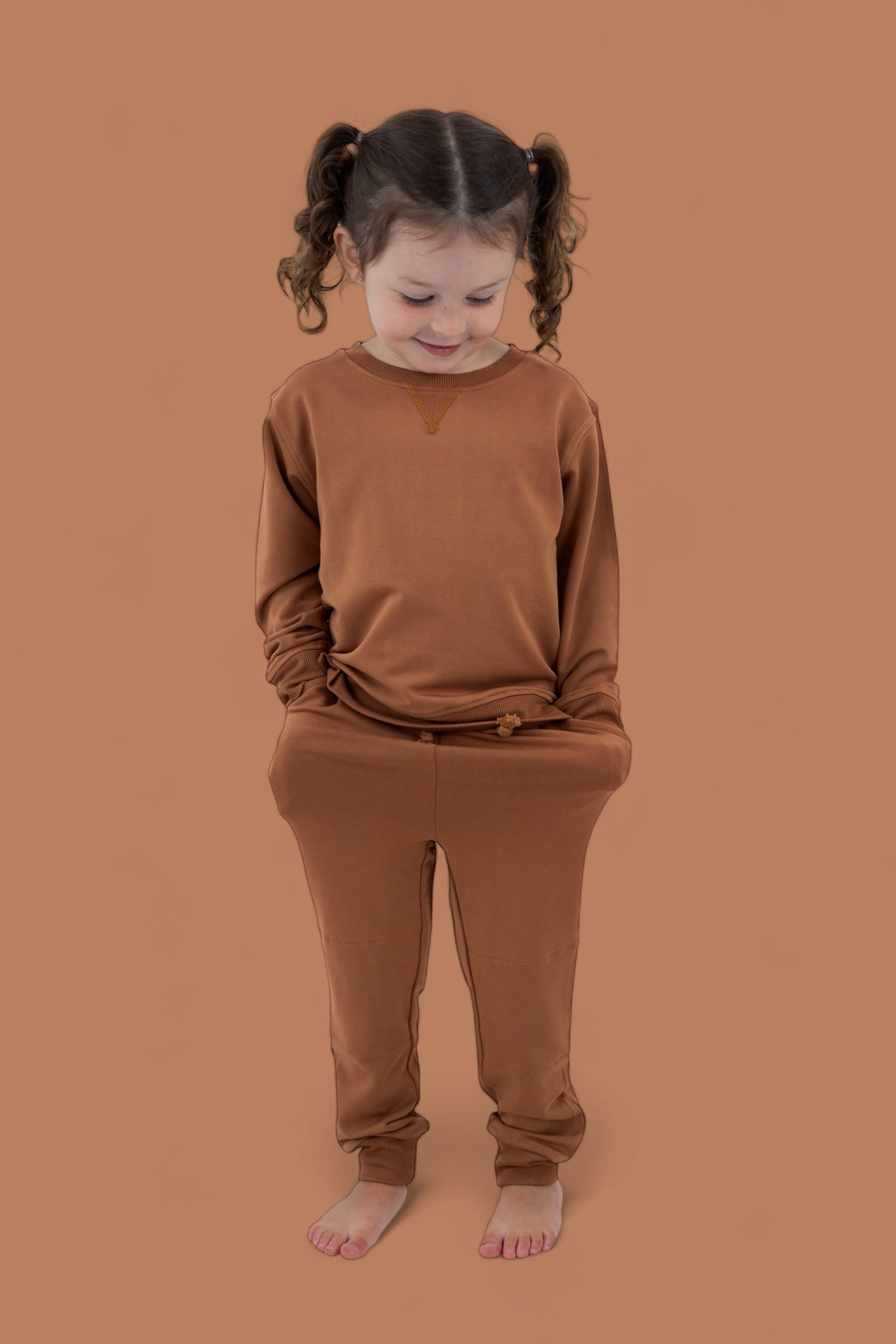 Snuggle-ready and full of style, the Espresso Dream Pullover for kids is the perfect everyday layer! Made from buttery-soft fabric in a warm, chocolatey tone, this pullover keeps your little one comfy from playdates to storytime. With a relaxed fit and ribbed cuffs, it’s made for easy movement and extra cozy cuddles.