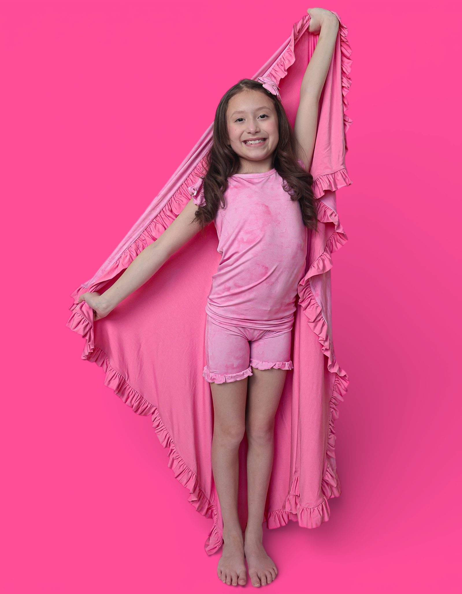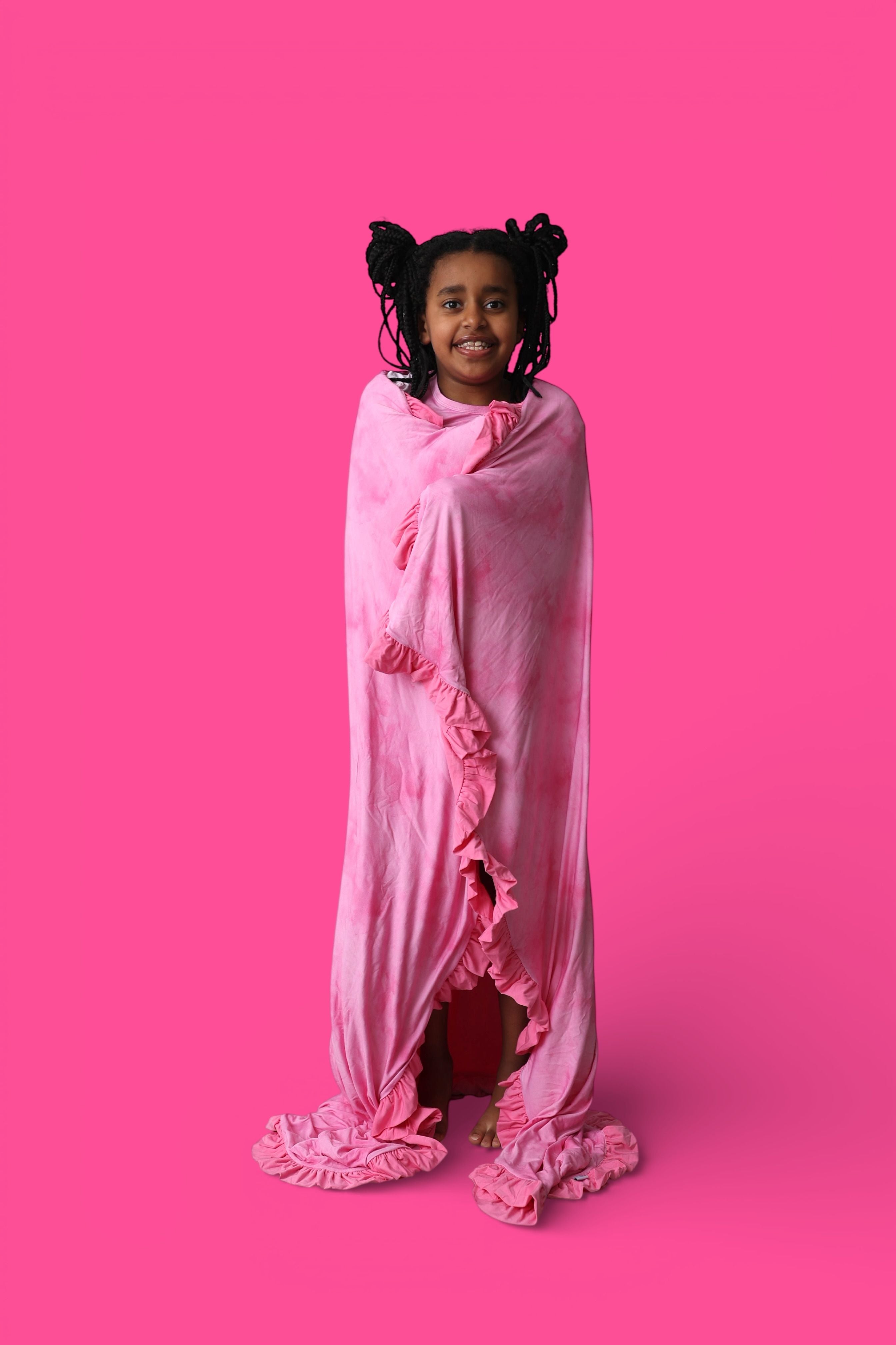 The Pink Daydream Dream Ruffle Blanket is made for snuggles, naps, and the coziest moments. Designed in a soft pink watercolor-inspired hue and finished with delicate ruffle trim, this blanket is crafted from our signature buttery-soft bamboo fabric for a gentle, breathable feel your little one will love.