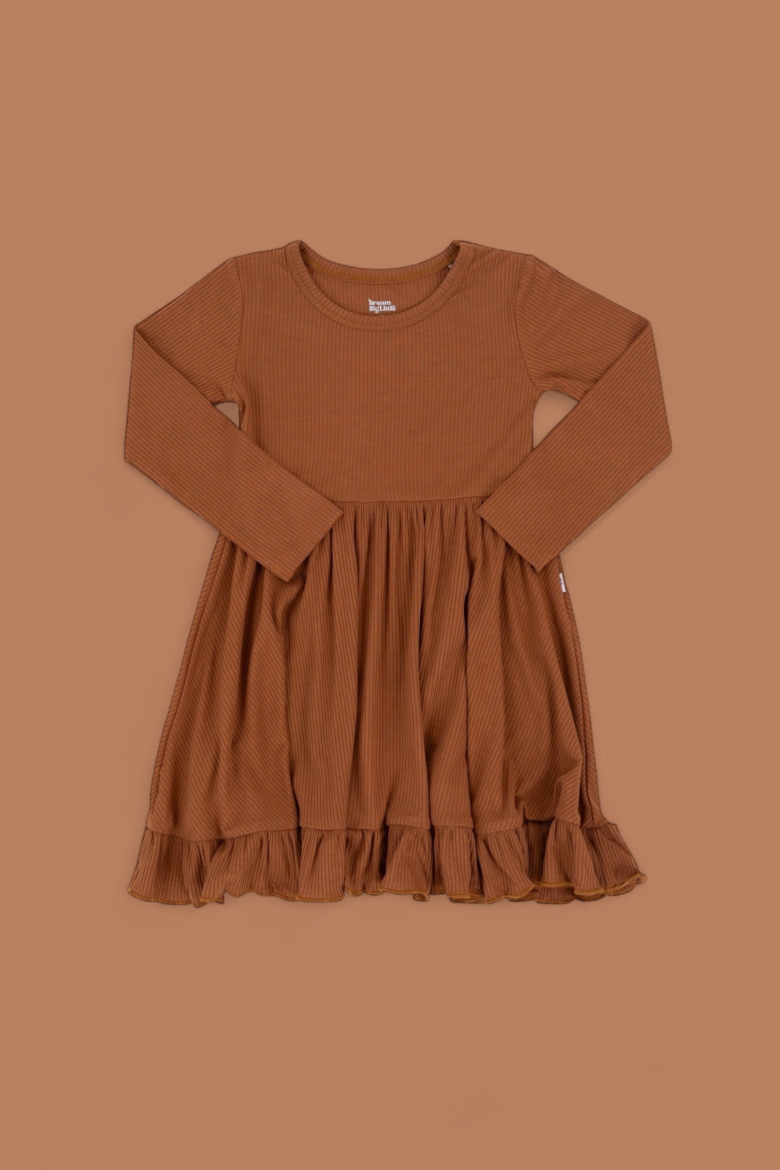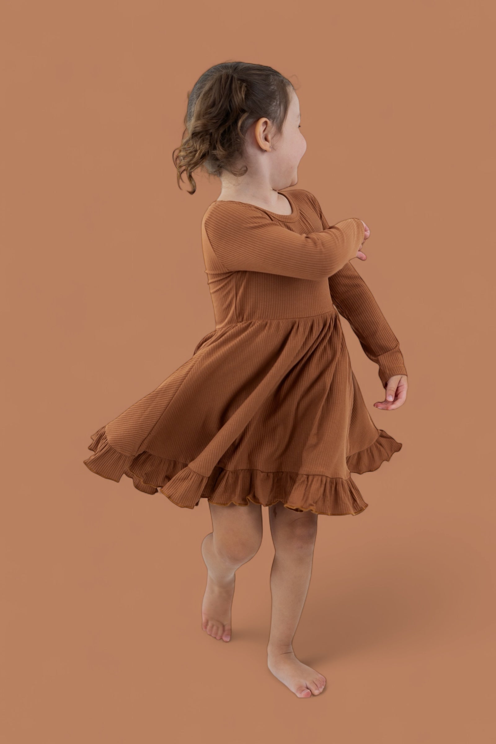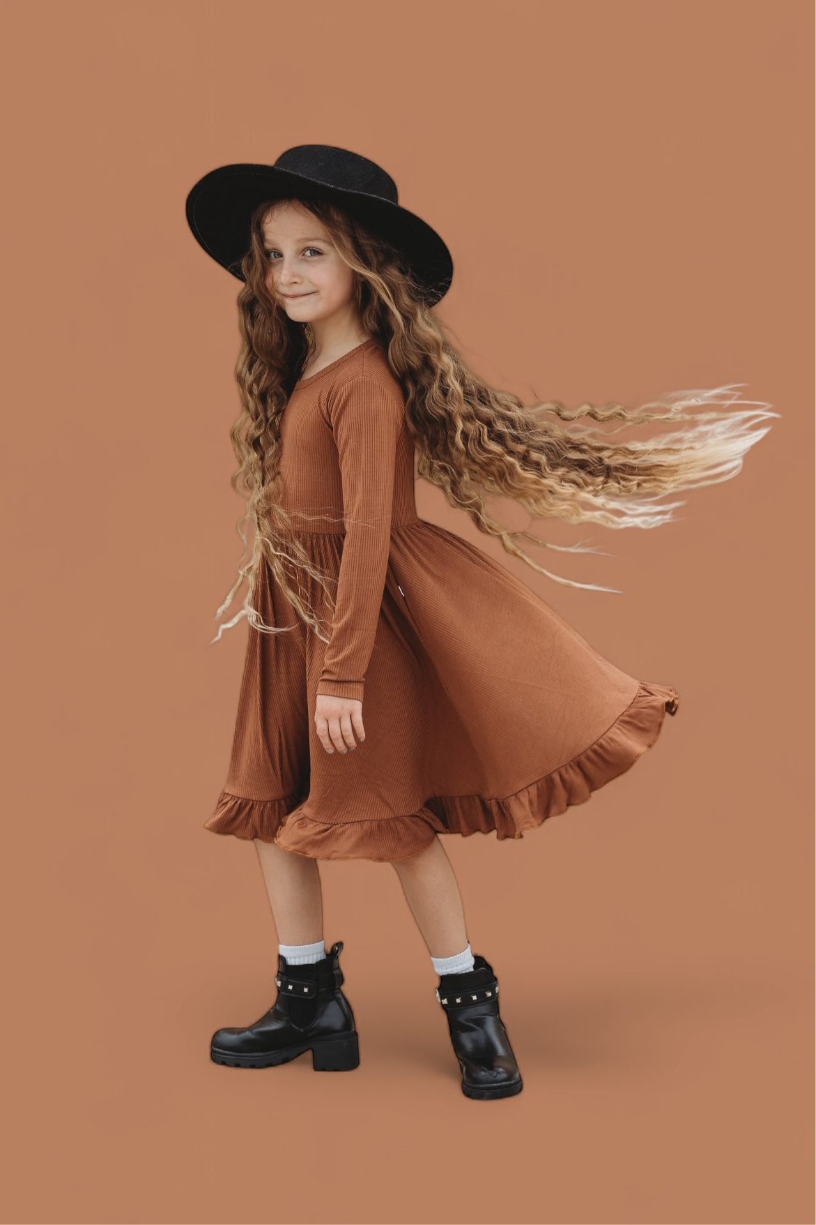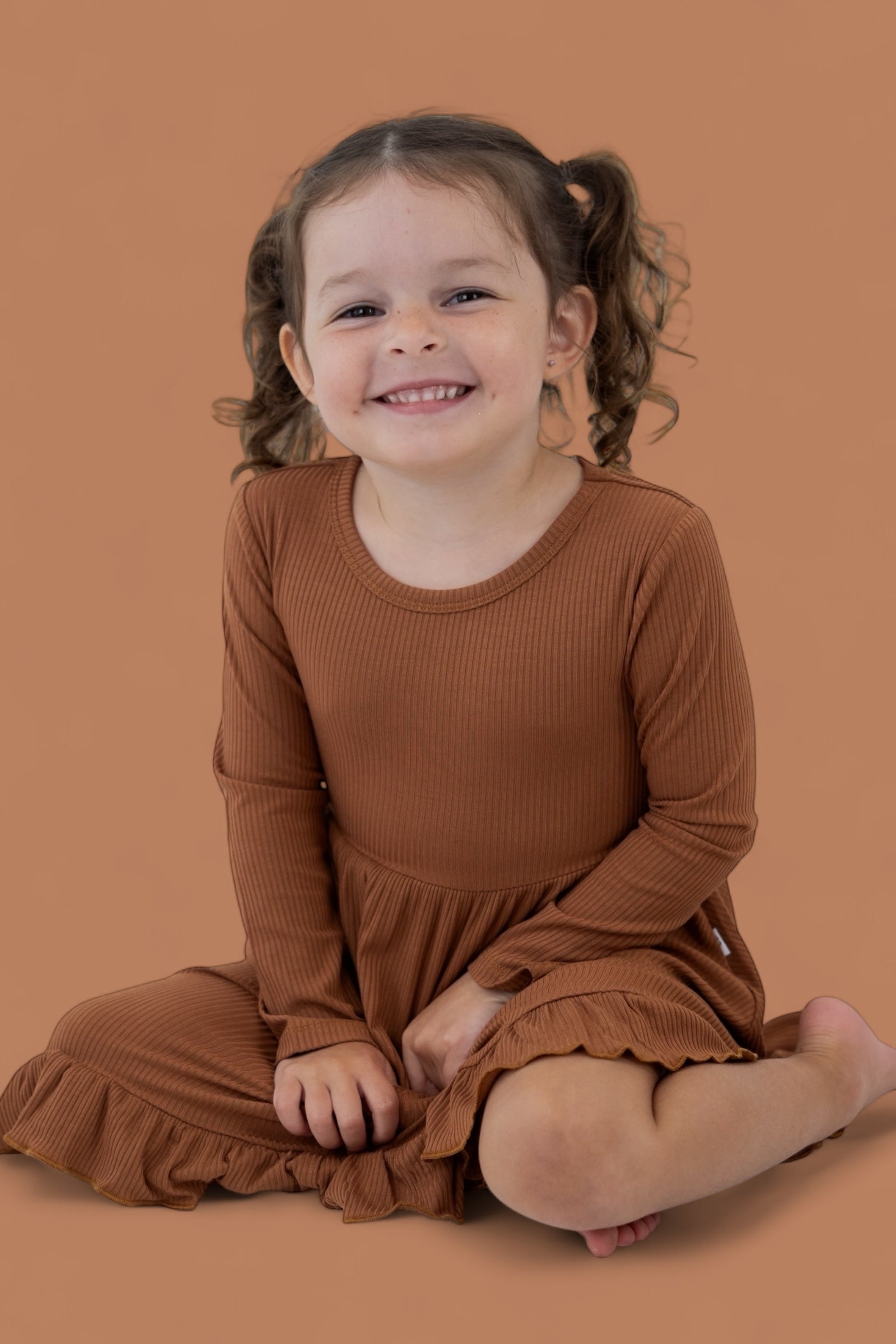 Simple, sweet, and made for twirls—the Espresso Long Sleeve Dream Ruffle Dress is the perfect blend of comfort and charm. Featuring a rich espresso hue and delicate ruffle detailing, this buttery-soft dress is ideal for fall outings, family photos, and cozy holiday gatherings. With long sleeves and a flowy silhouette, it’s an everyday favorite with a dressed-up feel.