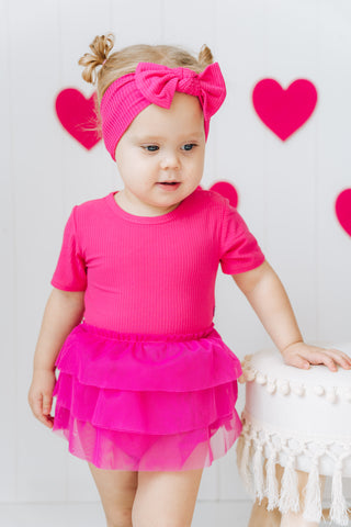 HOT PINK RIB DREAM TUTU BODYSUIT DRESS