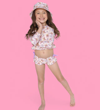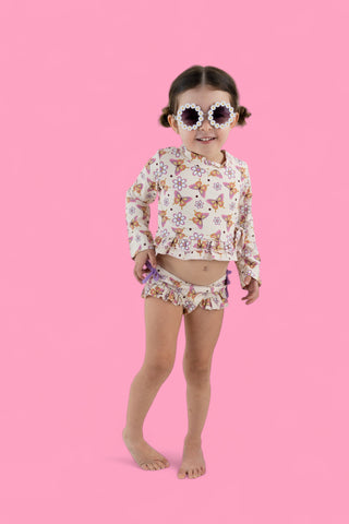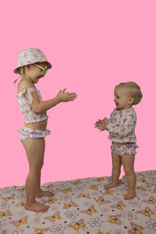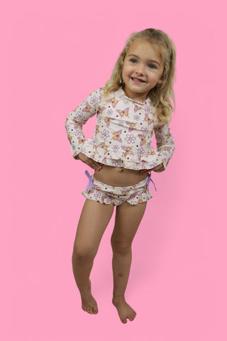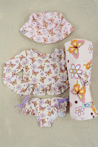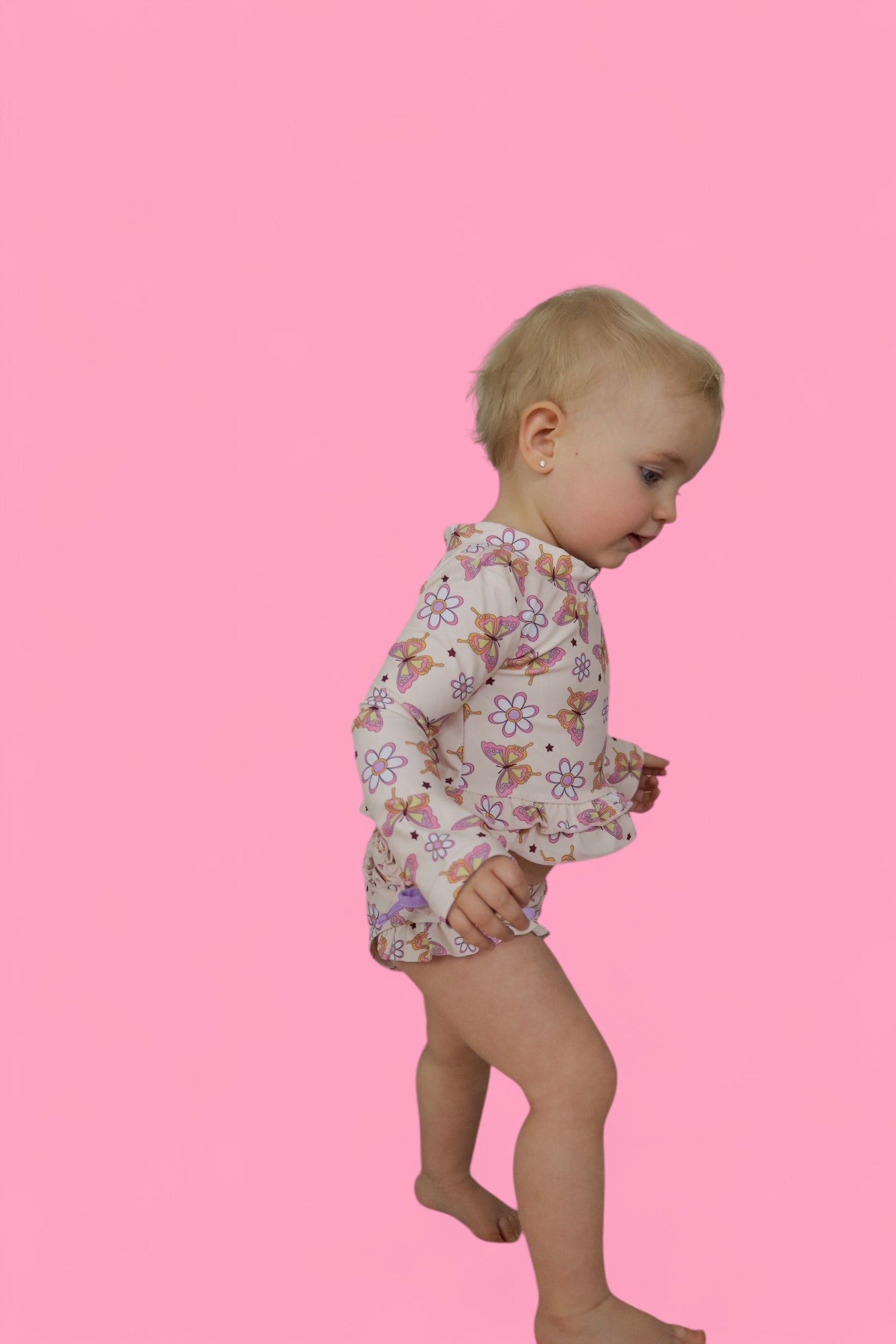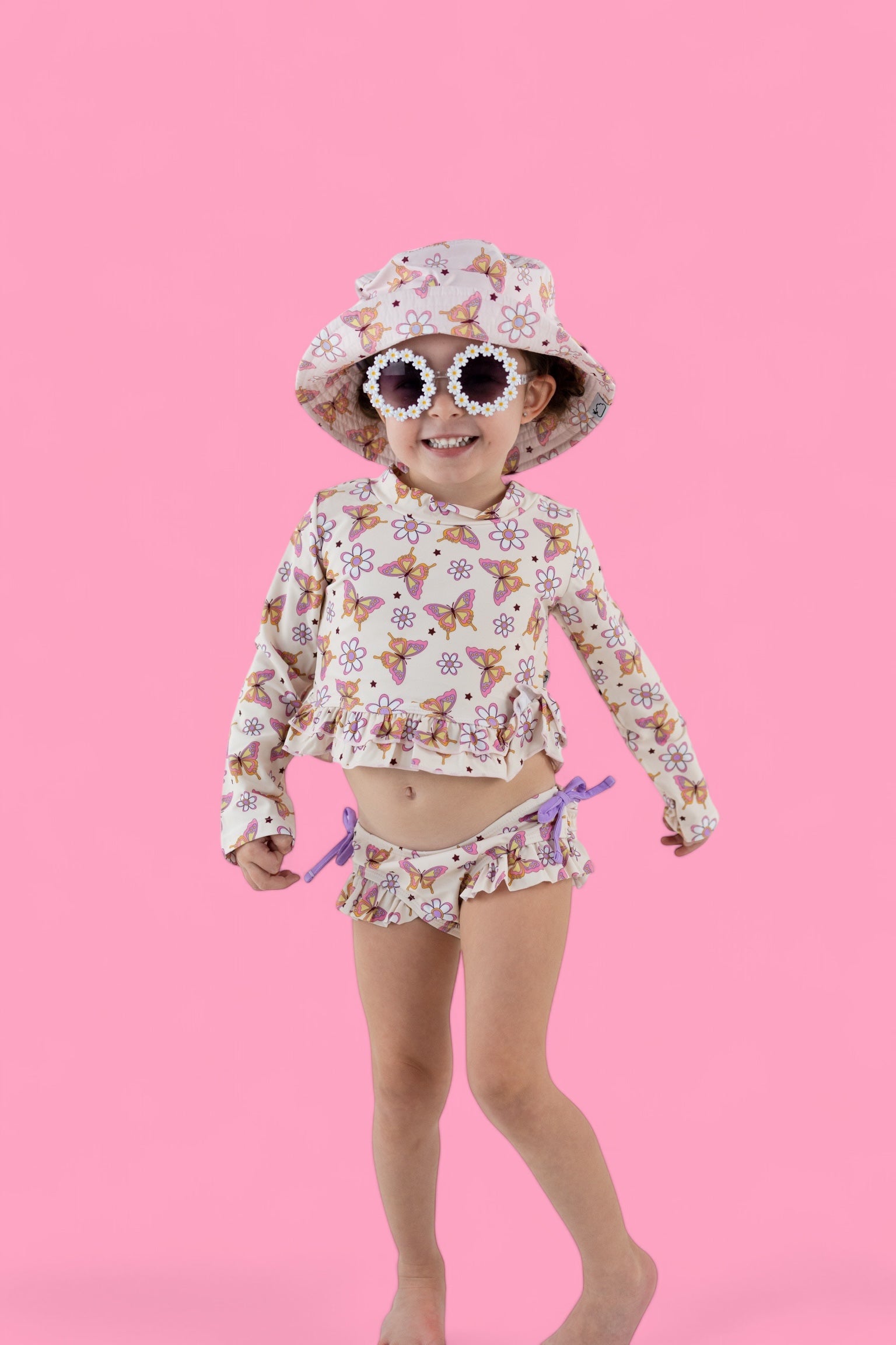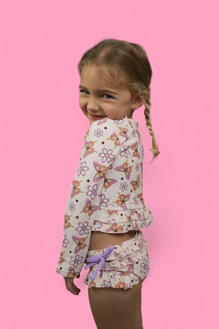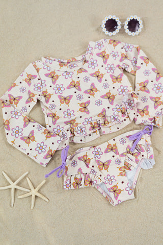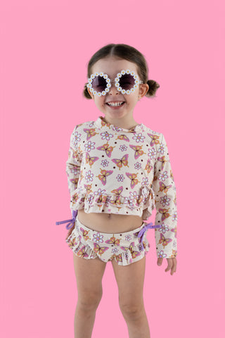 BLOSSOMIN’ BUTTERFLY DREAM 2-PIECE RASH GUARD RUFFLE SWIM SUIT