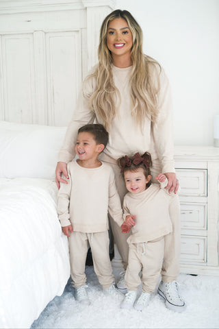 Pair our ultra-cozy Dream Jogger with the matching Dream Pullover for the ultimate relaxed look. Together, they create a perfect blend of style and comfort, ideal for lounging or running errands. Stay comfy and chic in this must-have set!