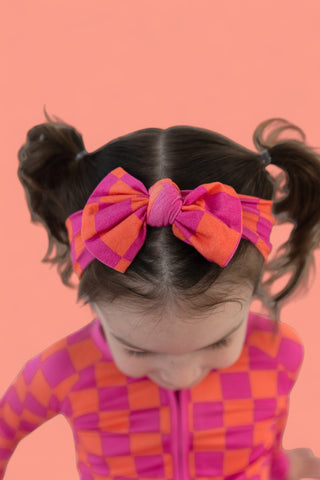 Add a playful touch to any outfit with our Dreamy Pink Checkers Dream Bow. Made with comfortable bamboo material, this one-size bow is perfect for all-day wear. Dress up or keep it casual, either way, you'll love the fun pink checkers and girly bow design.