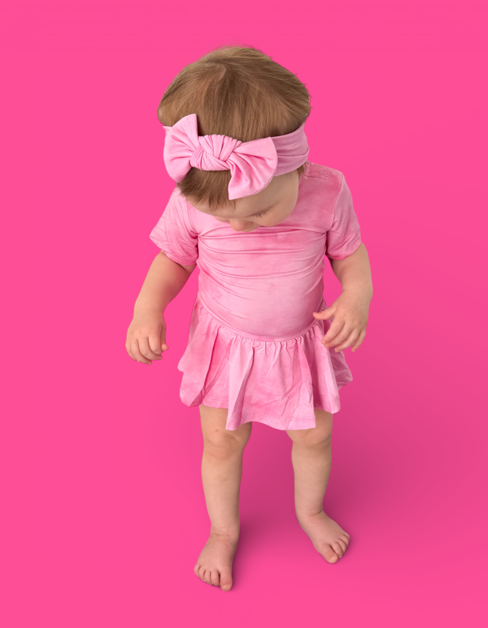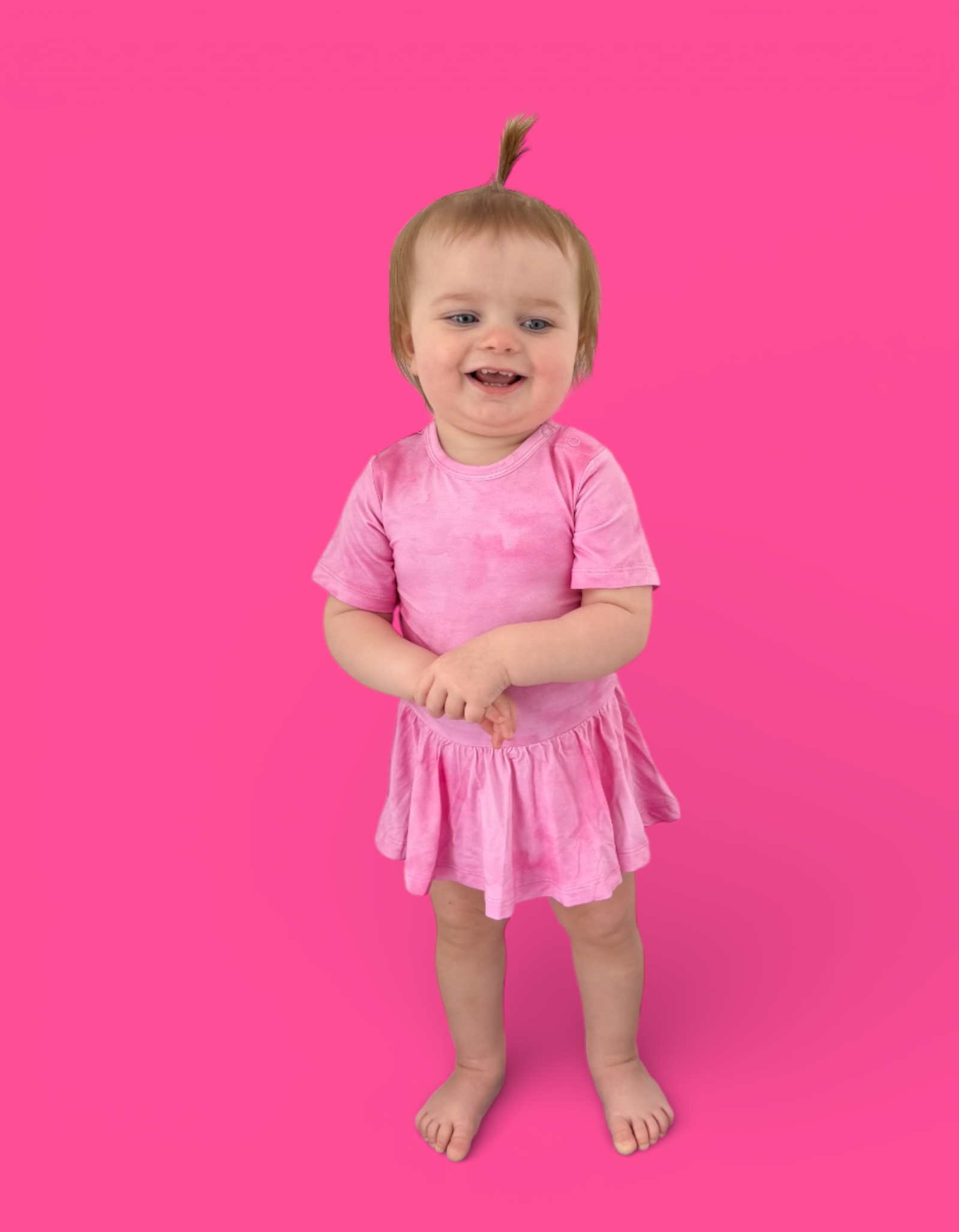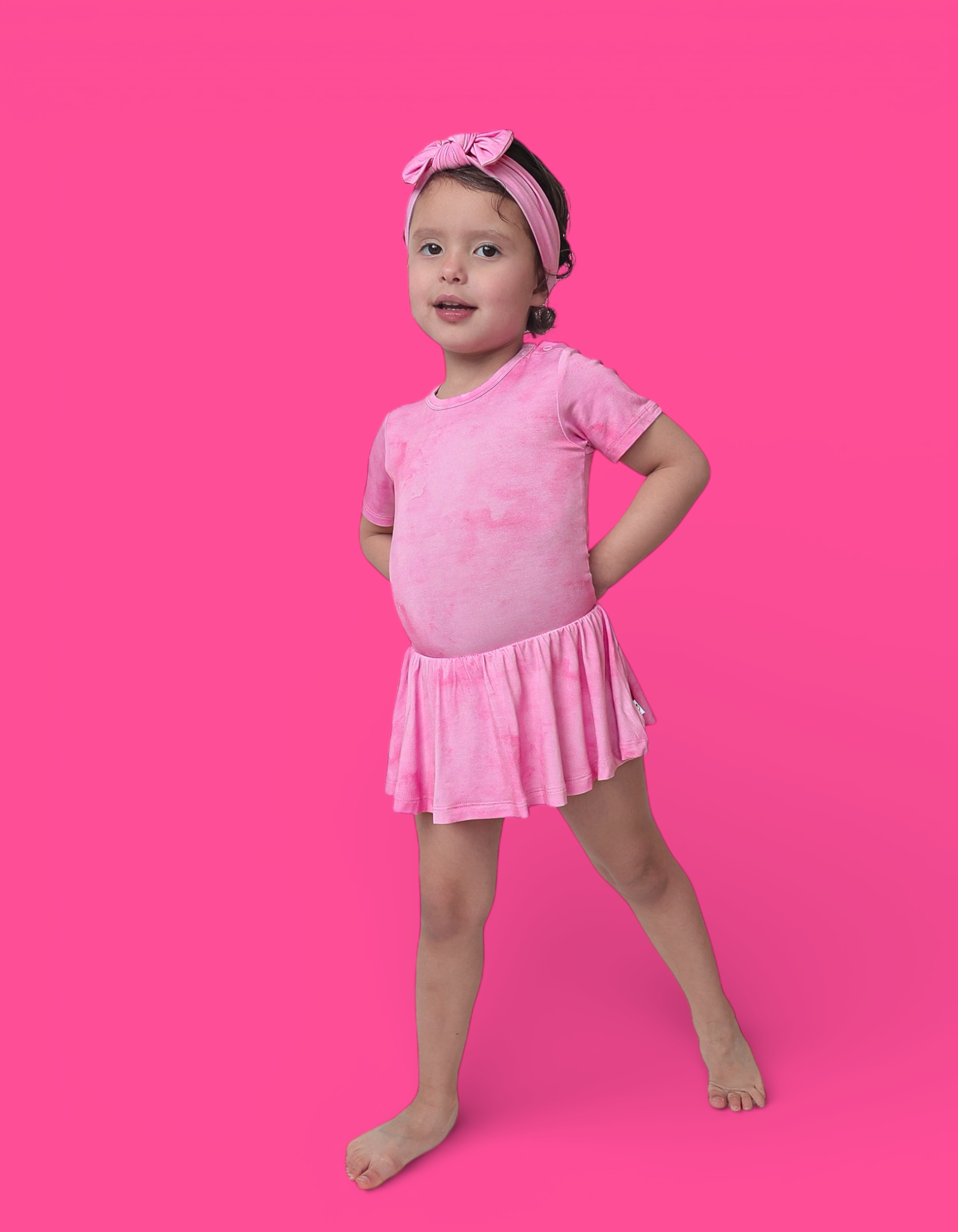 The Pink Daydream Dream Bodysuit Dress combines the ease of a bodysuit with the charm of a dress for all-day comfort and style. Designed in a soft pink watercolor-inspired hue, this one-piece is crafted from our signature buttery-soft bamboo fabric for a gentle, breathable feel that moves with your little one.