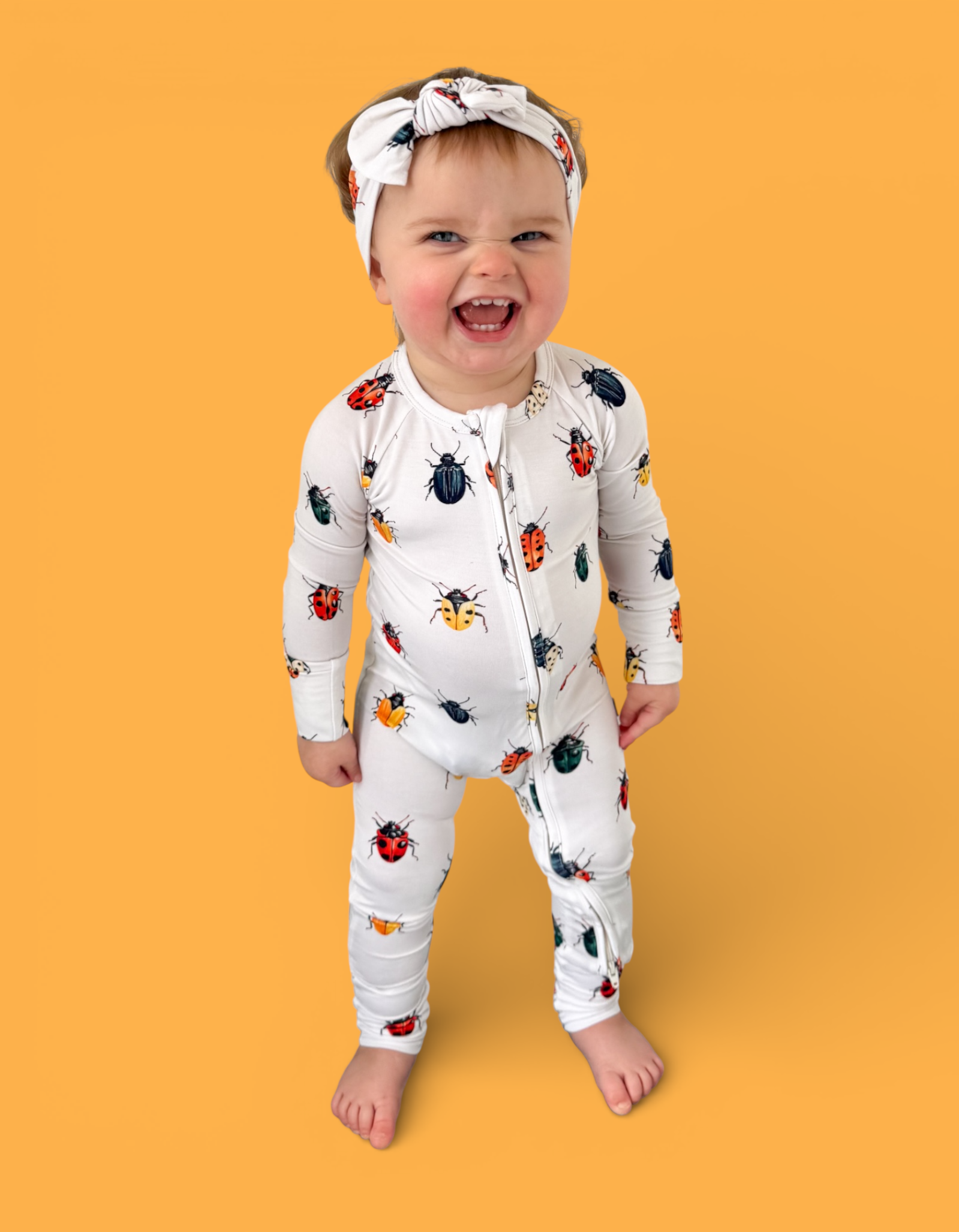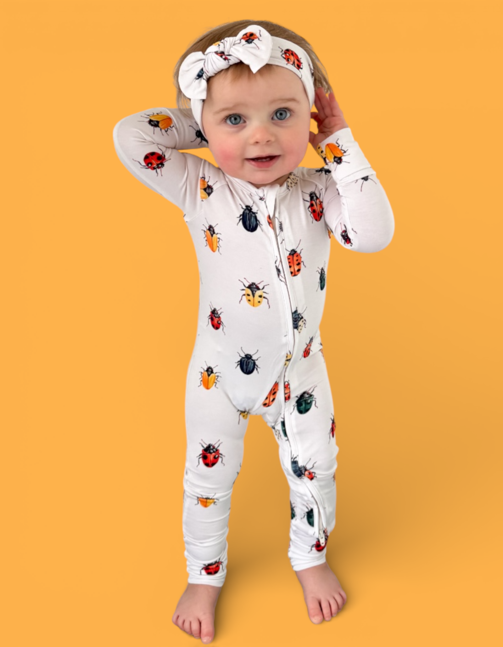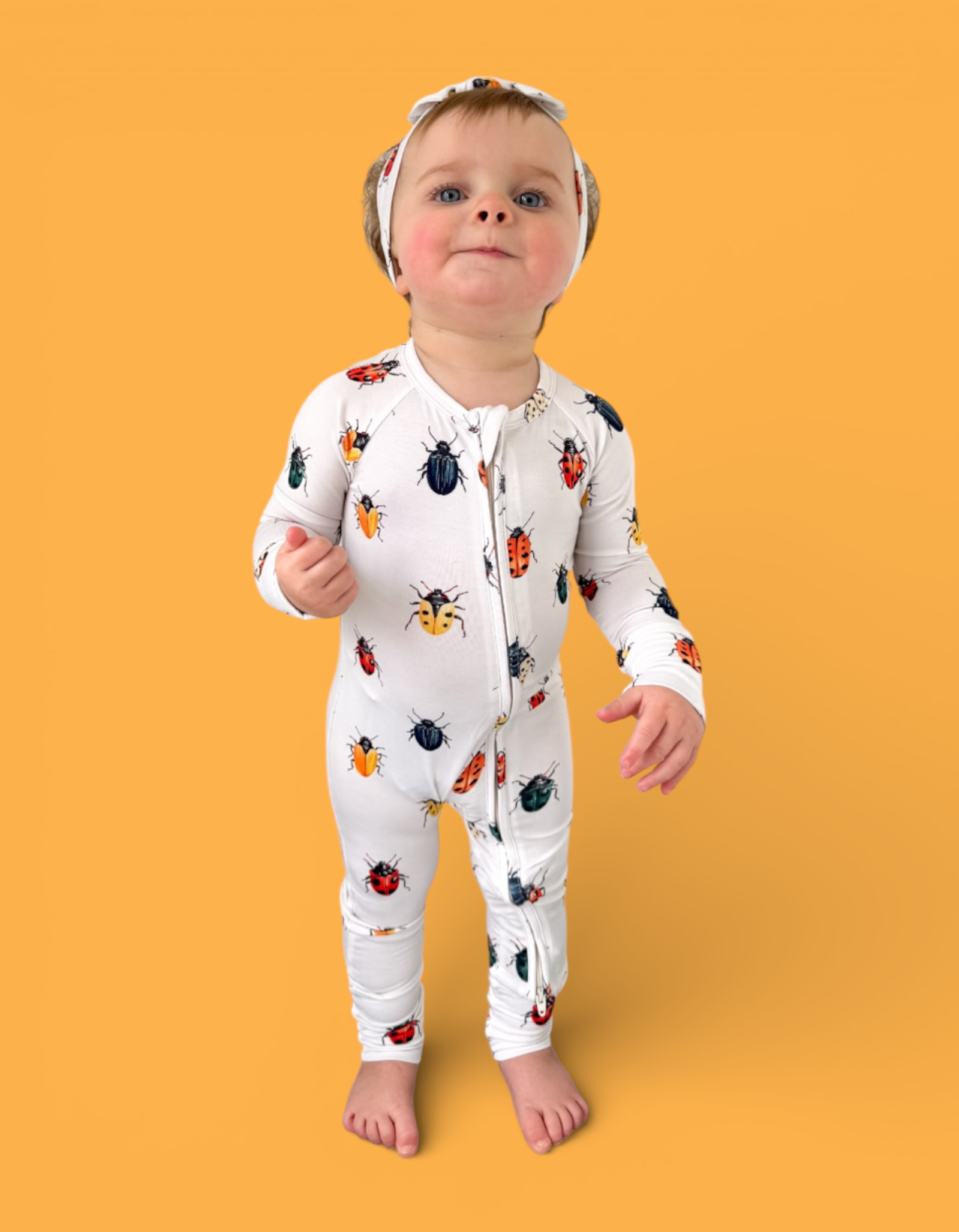The Bug Life Dream Romper is perfect for curious little explorers who love to wiggle, crawl, and snuggle in reminders of nature. Featuring a charming all-over bug print, this cozy one-piece is made from our signature buttery-soft bamboo fabric to keep baby comfy, breathable, and oh-so-snuggly all day and night.