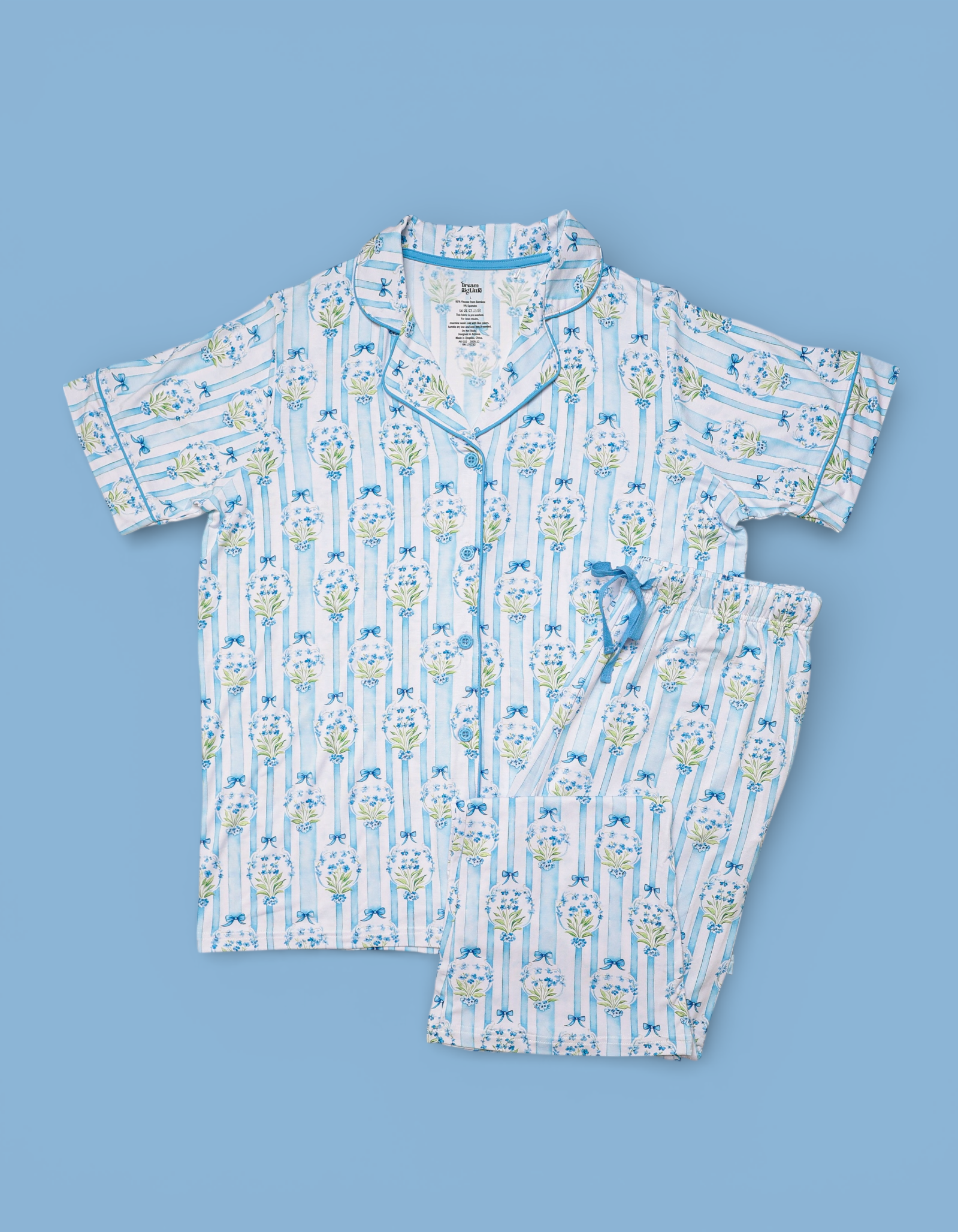 Timeless florals meet dreamy comfort. Our Heirloom Blue Blooms Women’s Dream Flare Set features a vintage-inspired bouquet print accented with soft blue stripes and ribbon detail — a beautifully classic look for spring mornings, lounging, and memory-making with your little ones. Elegant, feminine, and perfect for matching moments. ✨💐