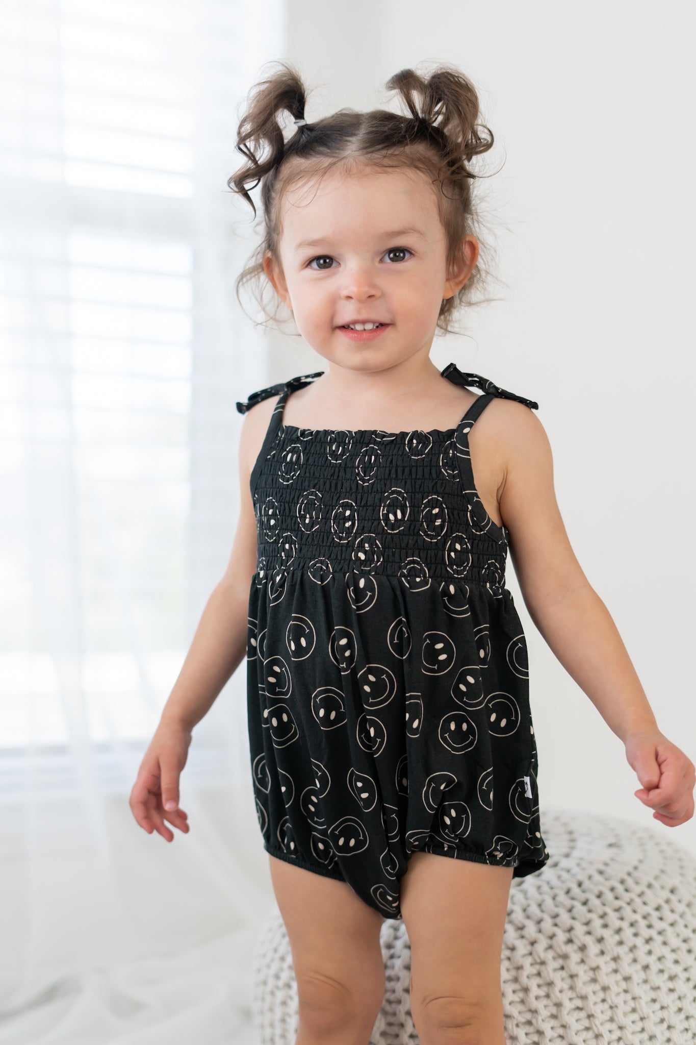 Get your little ones ready for dreamland with the Midnight Smiles Dream Bubble Romper. Made from soft bamboo material, this playful romper features a smiley face print and is perfect for fun and relaxed nights. Say goodbye to boring bedtime and hello to endless giggles!